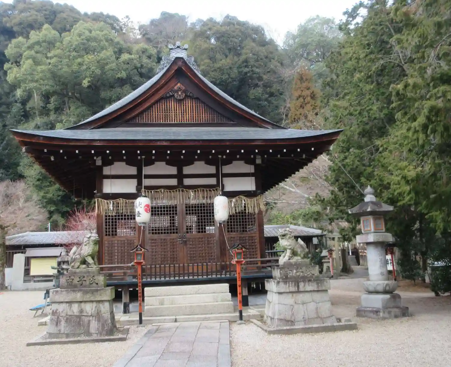 三井寺(園城寺)の守護神をお祀りされる神社です。朱塗りの楼門がいいですね!こちらもまたまた御本殿の…
