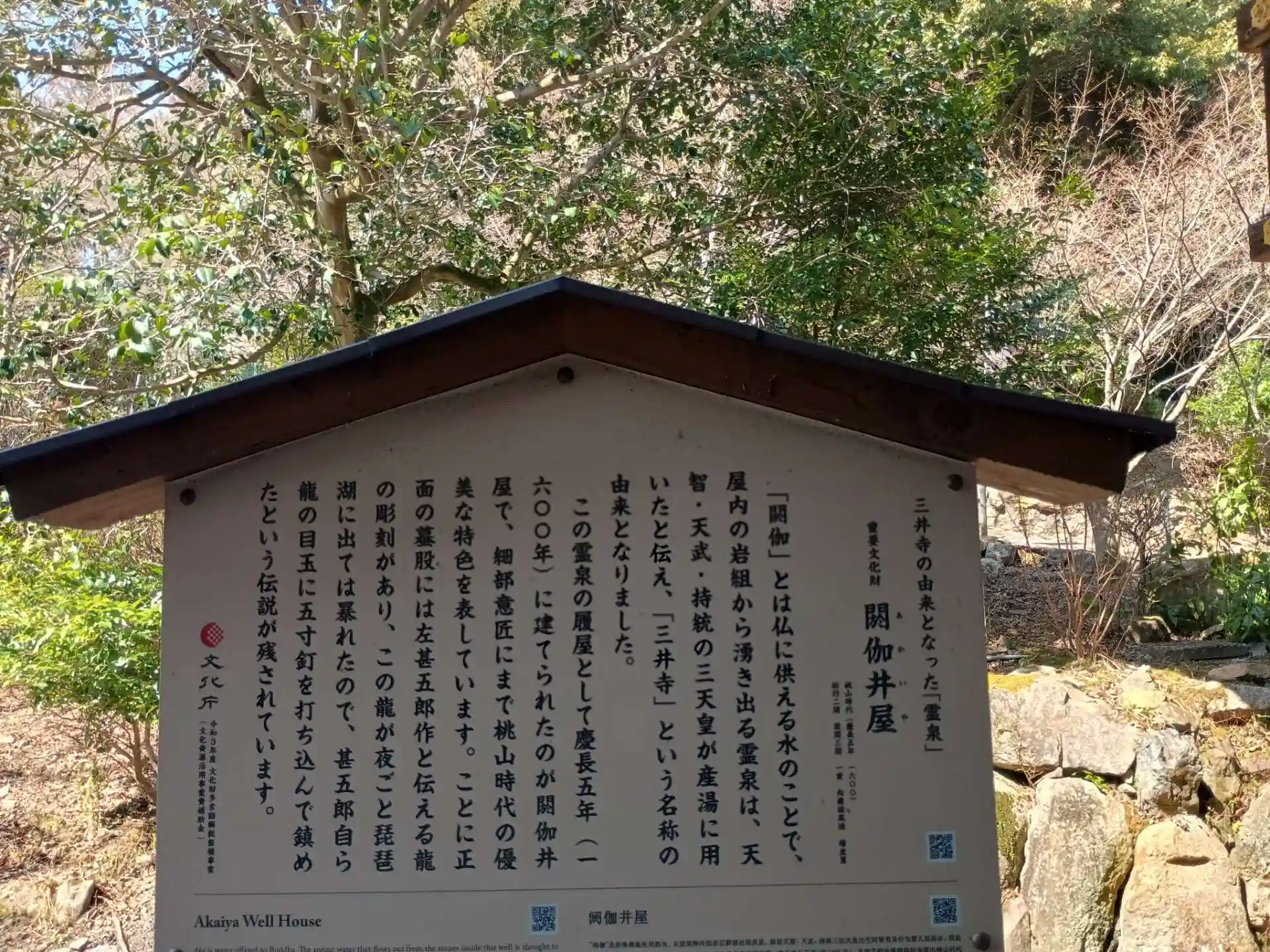 境内にある霊泉(井戸)の水が天智・天武・持統の三天皇の御産湯に使用されたことから「御井(みい)の寺」と称され、「三井寺」の由来となったとされています。