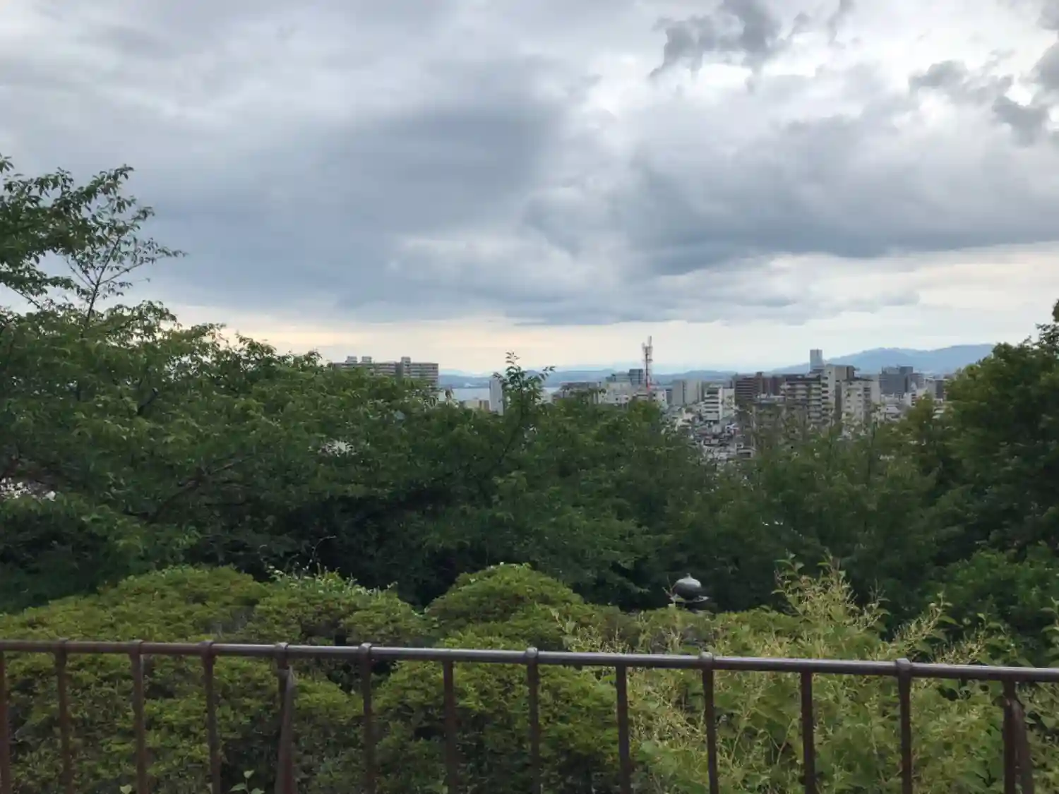 右手に琵琶湖と青空、左手に暗雲…この後京都に向かう最中、ゲリラ雷雨に見舞われました