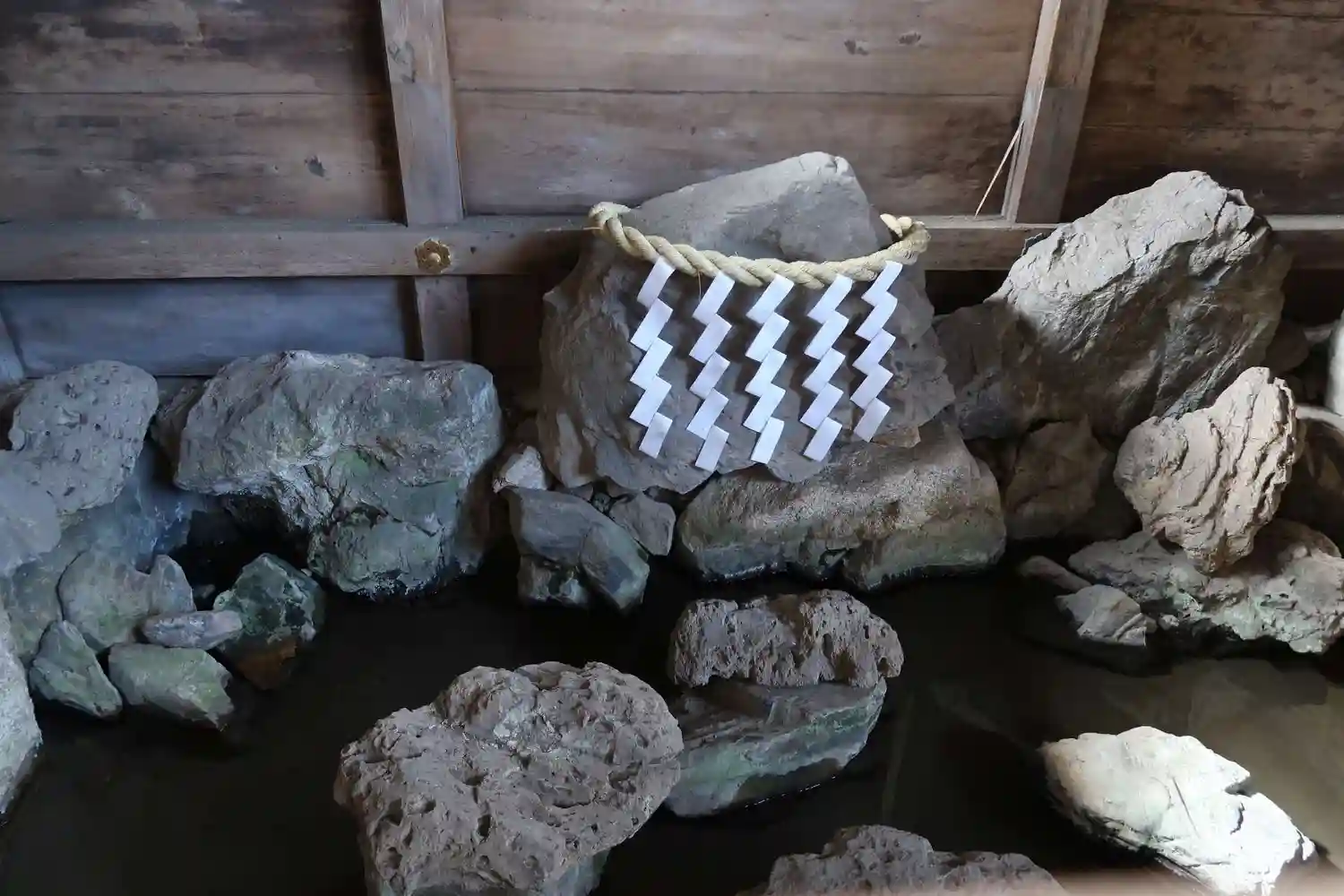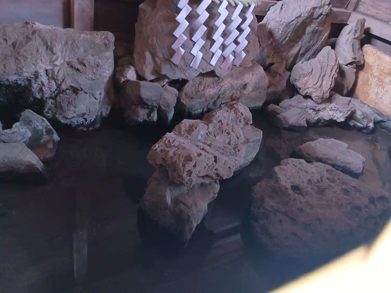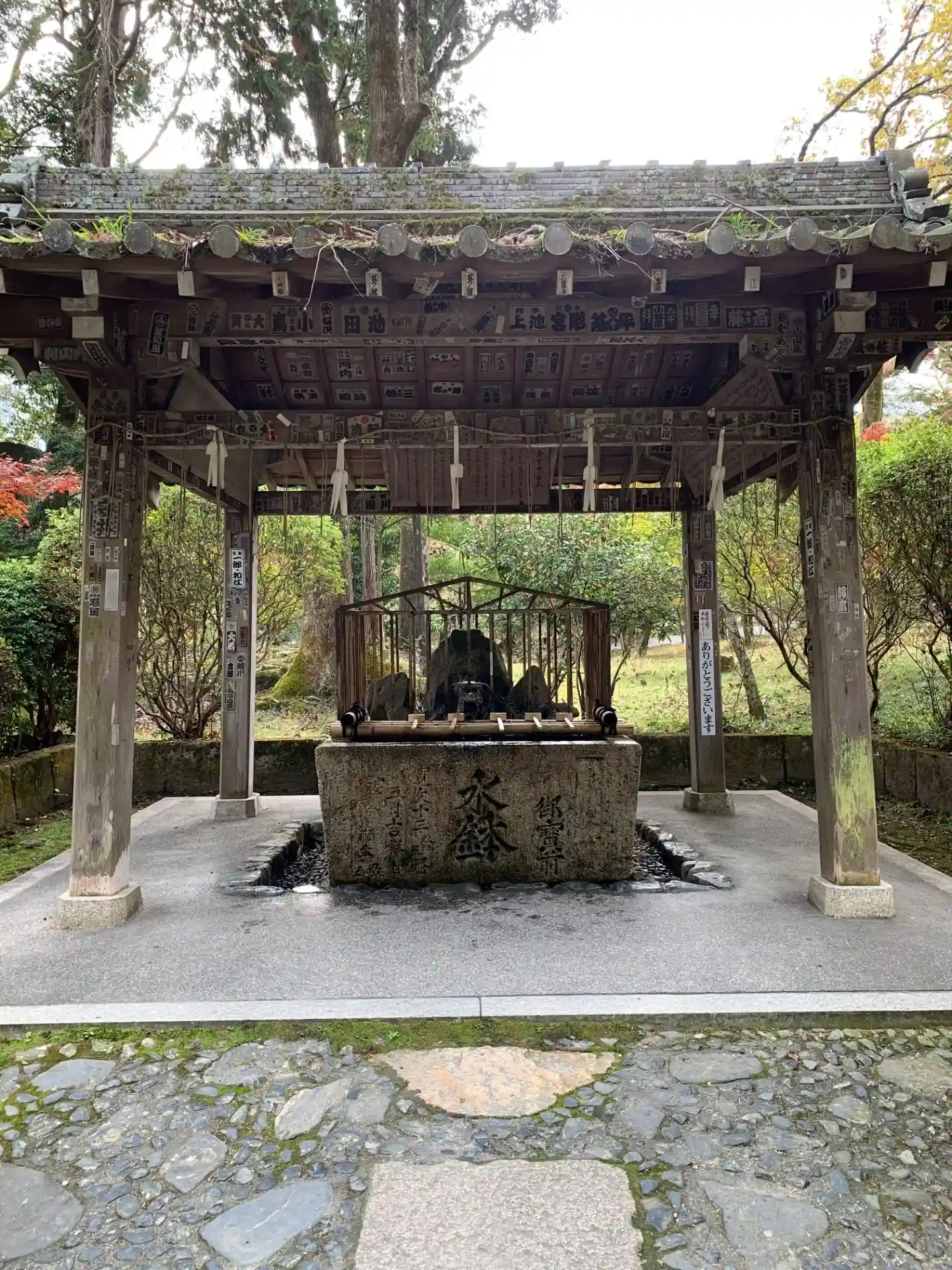 金堂脇にある閼伽井屋の中の岩組みから霊泉が湧き出している。