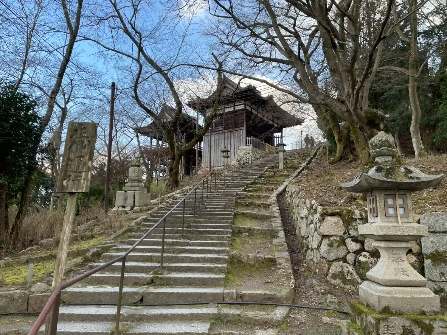 この階段を上がると観音堂。頑張りました。