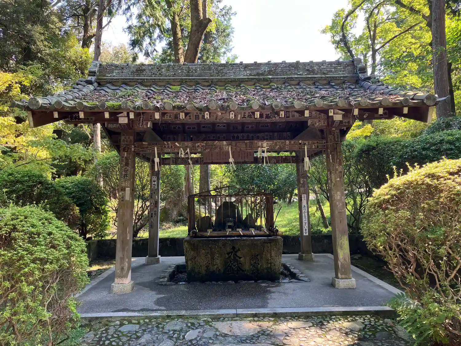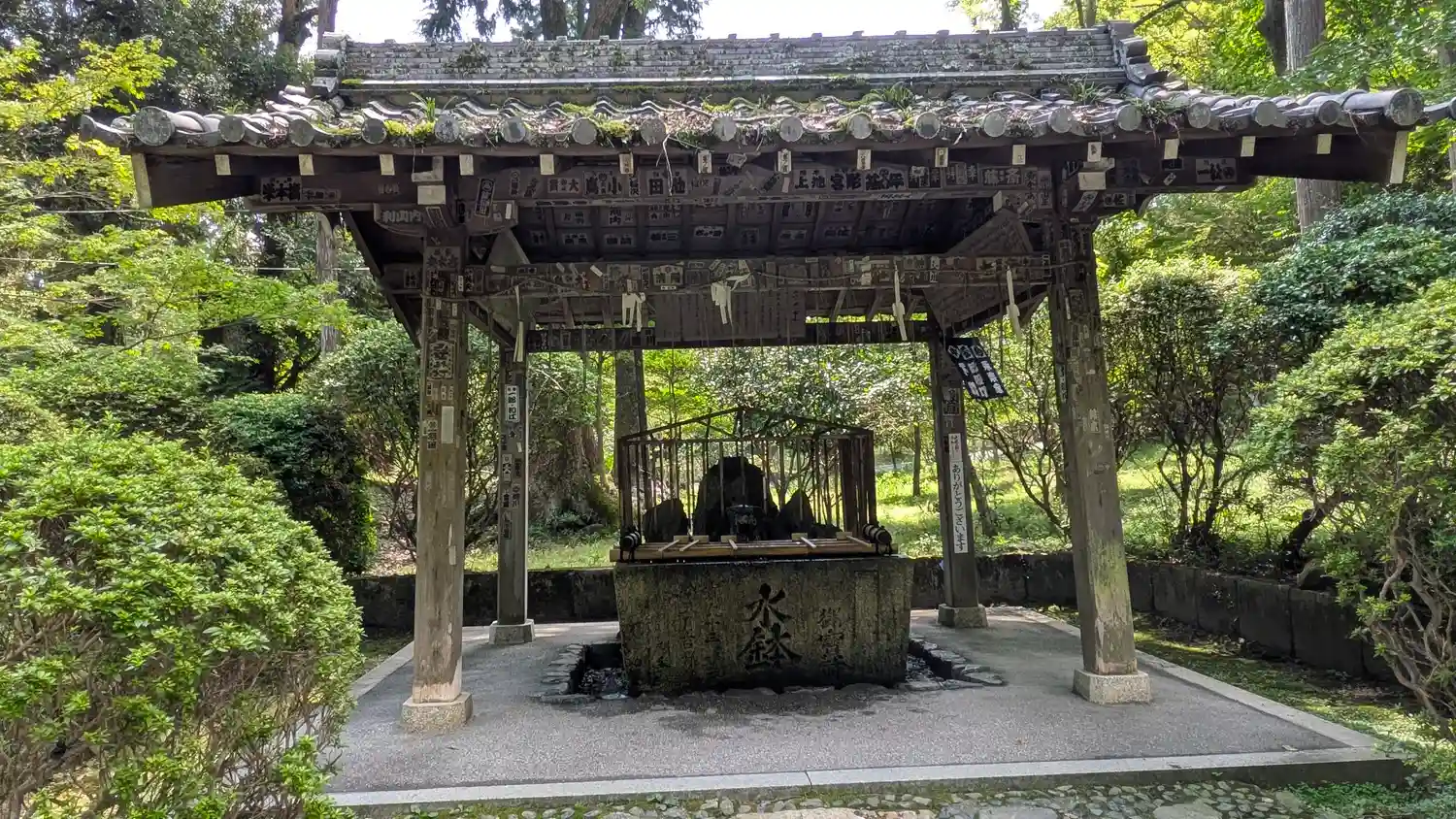 閼伽井屋(天智・天武・持統の三天皇が産湯に用いられたという泉が涌いています。)