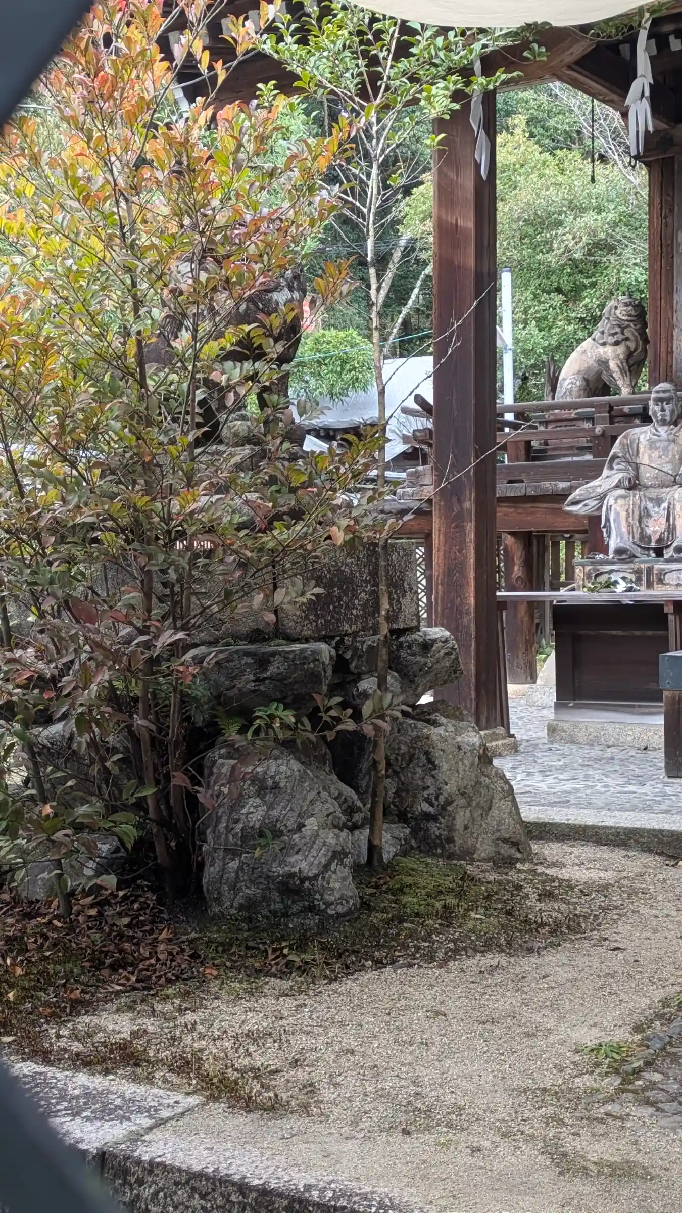 園城寺(三井寺)の東側、琵琶湖第一疎水のすぐ近くに鎮座しています。