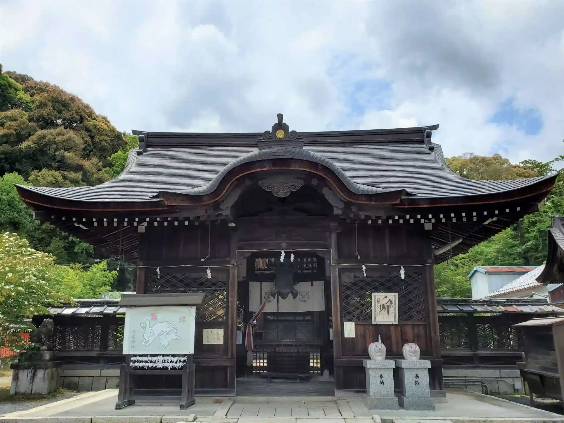 拝殿手前にはめおと卯