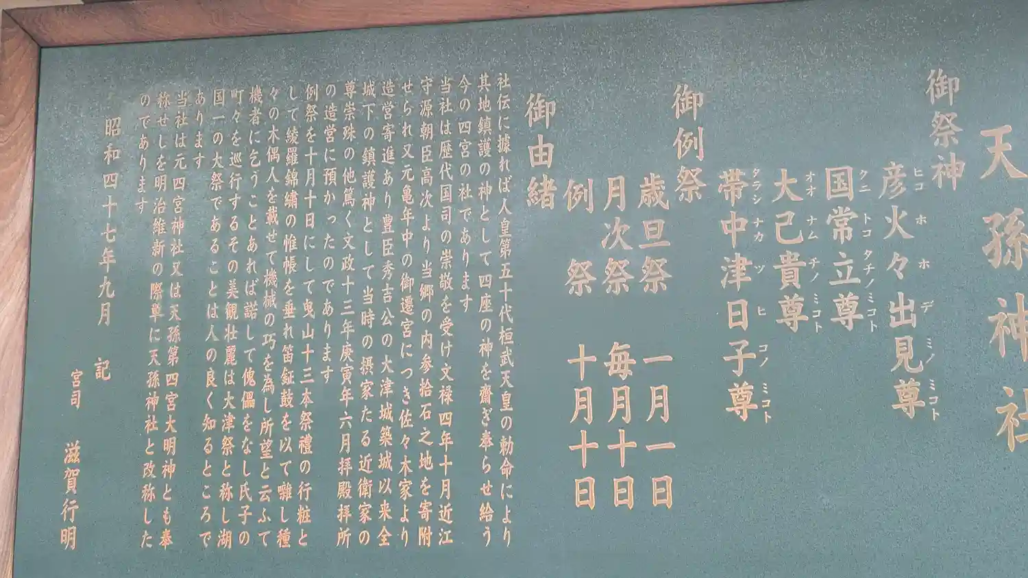 | ご祭神 | 《主》彦火火出見命,《配》大国主命,国常立命,帯中津日子命 |