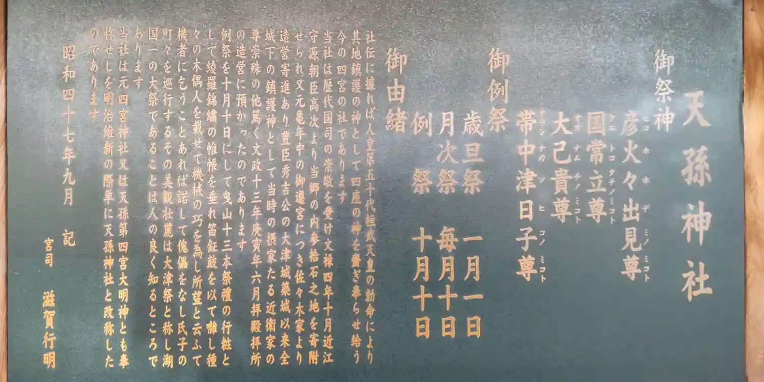 大津祭の宵宮に行った際に大津祭の元宮である天孫神社にお参りに行きました。