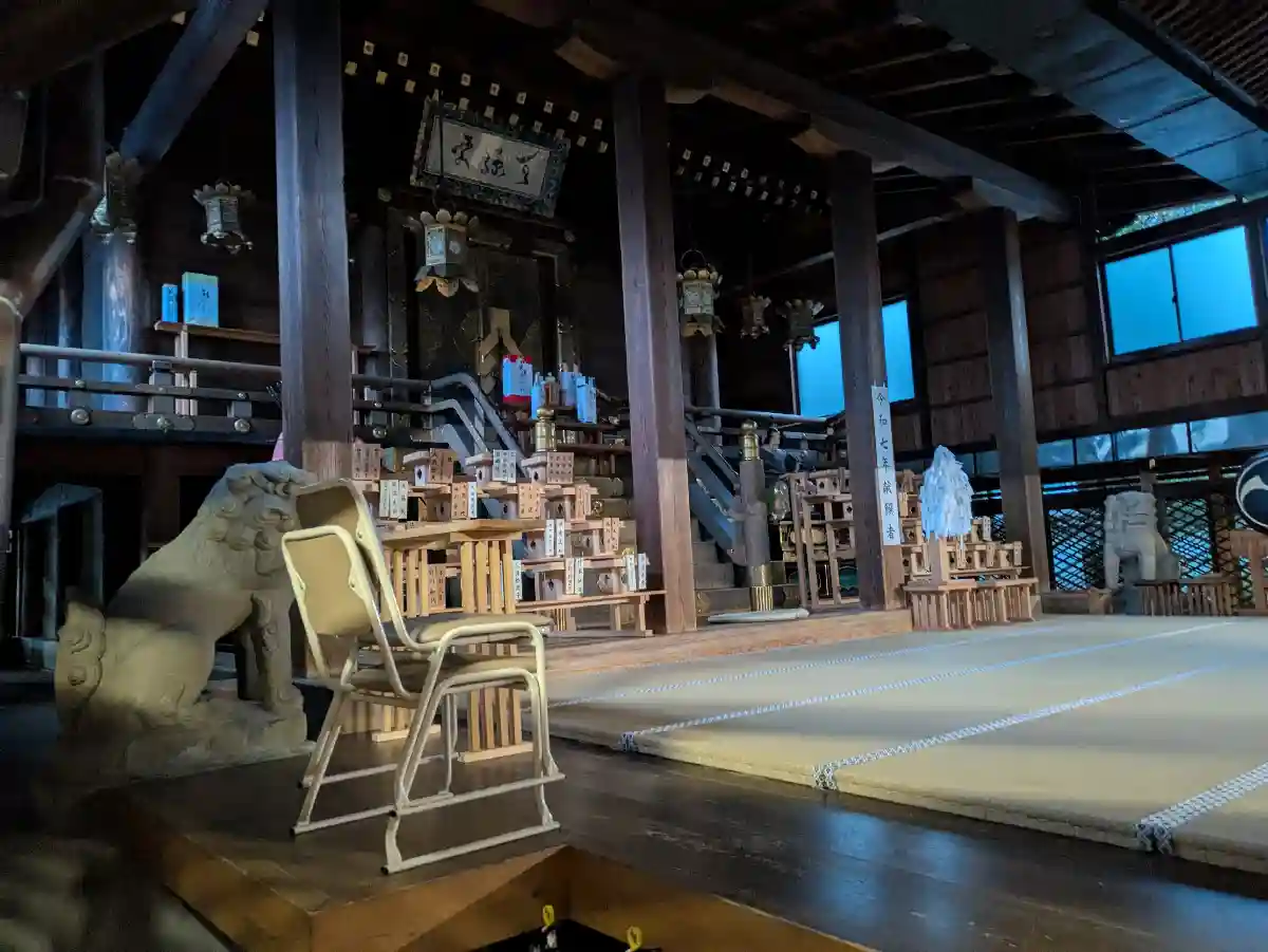 本殿内部には狛犬さんや随身の姿も。