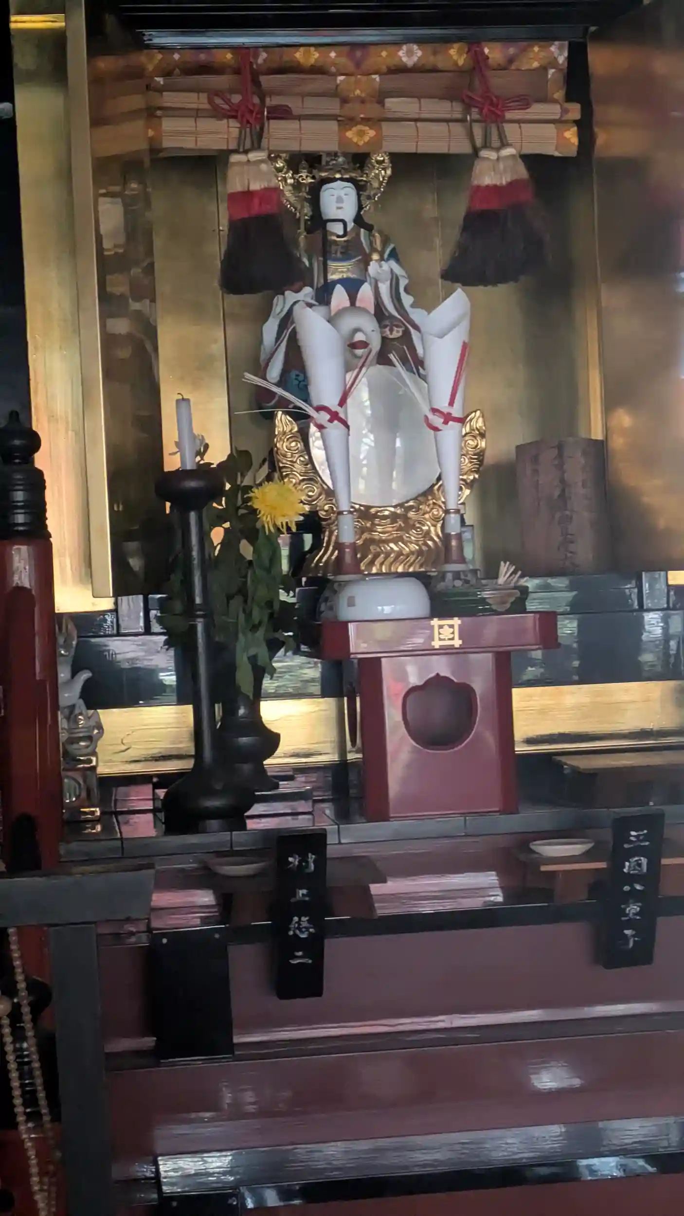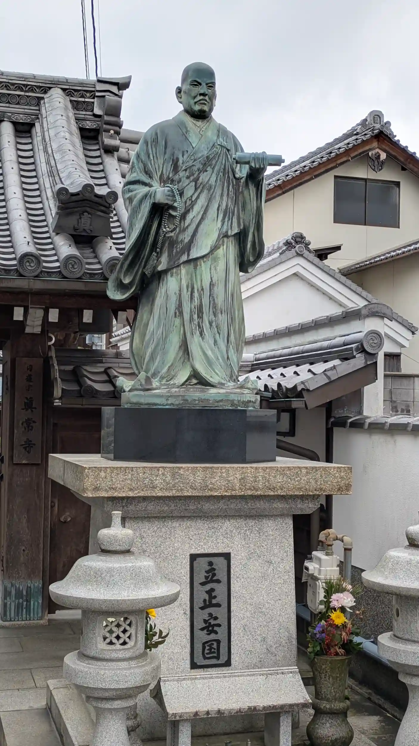 GoogleMapに騙され、大龍大明神の居た路地から戻り北へ向かうと通り沿いに山門がありました・・・なぜ路地に・・・龍神様のお導きか?などと思いつつ境内へ。山門前にはちょっとシュッとした日蓮聖人像だなぁと思いつつ境内へ。山門入ってすぐ左には最上稲荷😲日蓮宗寺院でもなかなかお目に掛かることが無いのですが久しぶりに拝見しました😊堂内には命婦様に跨る稲荷さん(荼枳尼天)のお姿も😊お隣には三社宮。妙見さんと何だろう?七面宮?鬼子母神?など考えながらこちらもお詣りさせていただき、本堂前へ。合掌し御題目を唱えて庫裏へ。ご住職が居られて御首題をお願いすると書きますが書置きもありますがとのこと。どういうことだろうかと伺ったら日像上人の絵入りの御首題があるとのこと。これも御縁とせっかくなので書置きをいただきました😊そして山門の像が日蓮聖人でなく日像上人であることが判明😅なるほど納得です。お話を伺うと日像上人により改宗された縁故寺院とのこと。大津は京への玄関口ですもんねぇ😅どうやら滋賀県には日像上人ゆかりの寺院がちょこちょこあるらしいです。そしてもう一つ気になった三社宮についてお聞きすると、妙見宮、清正公、三十番神の三社だそう😲妙見さんしか当たらずでした😅