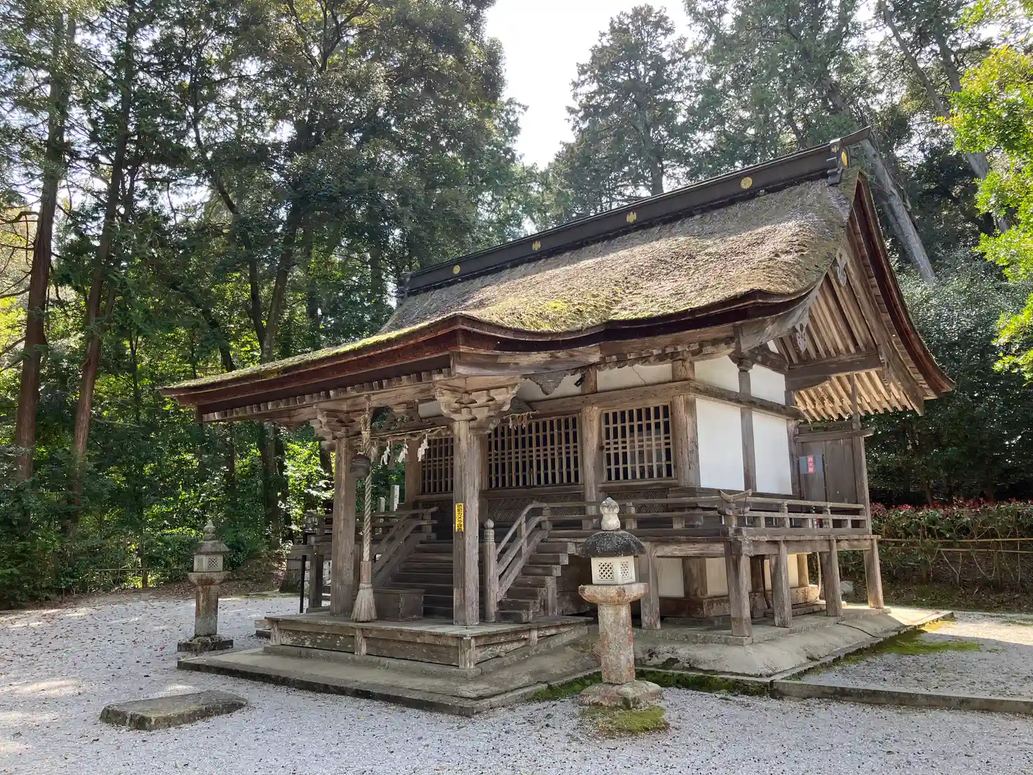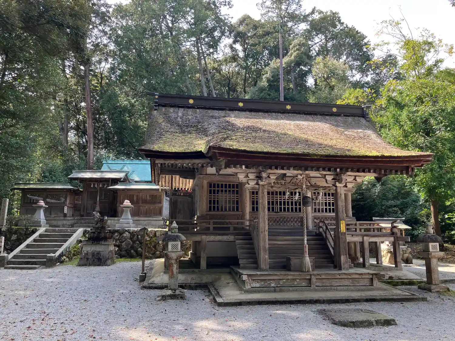 本殿の斜め前に鎮座する境内…