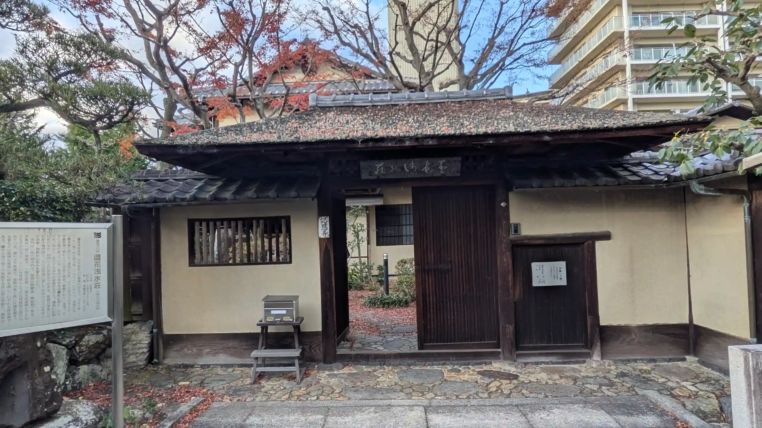 GoogleMapで蘆花浅水荘とあり、どうやら日本画家・山元春挙の別邸だったよう。残念ながら要予約との張り紙が・・・出直しです。ネットだと所有者が「記恩寺」とあり、寺院として活動されているかは不明・・・😅