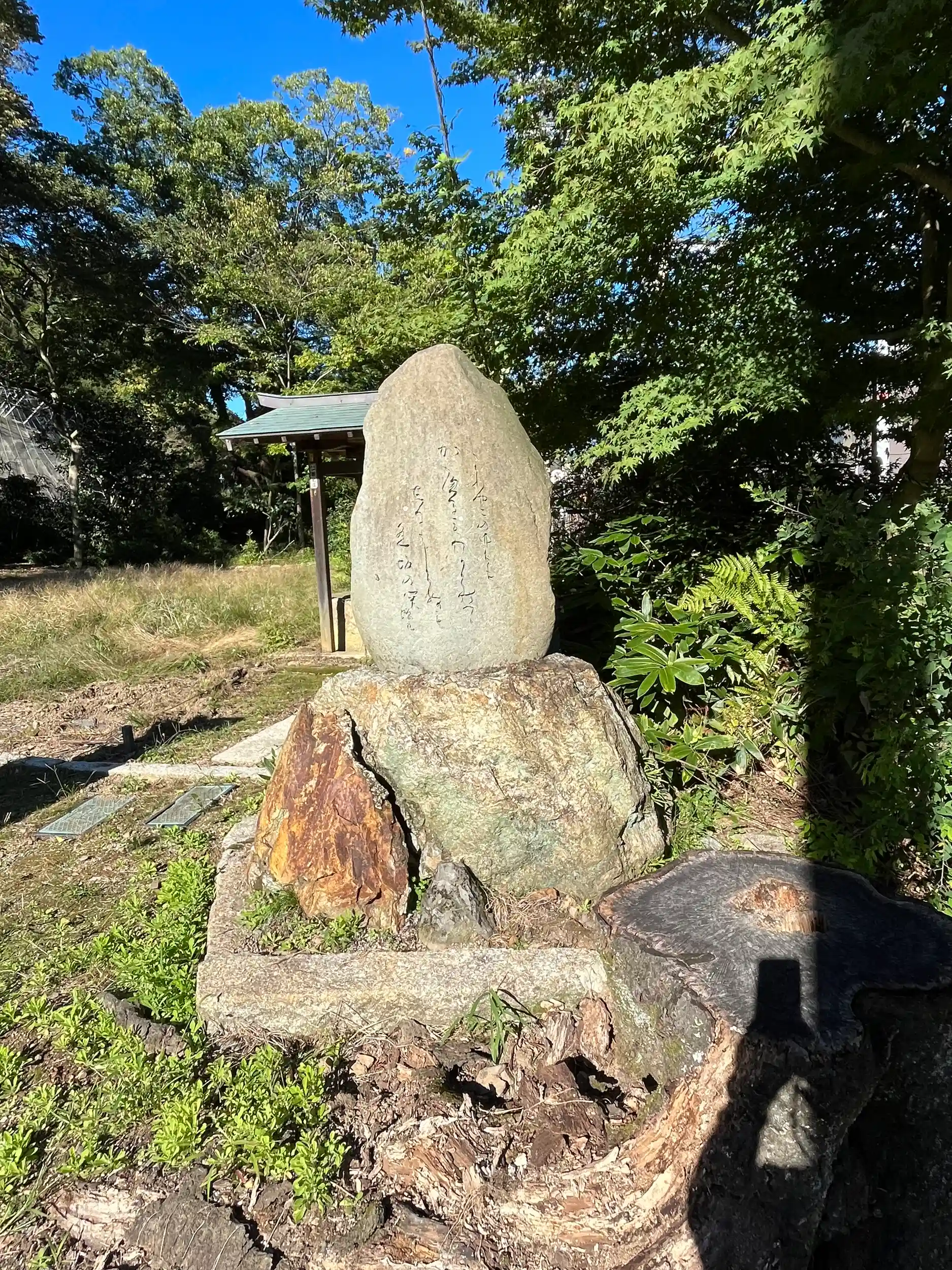 鳥居⛩をくぐり、右手、手水舎手前にある百人一首の石碑