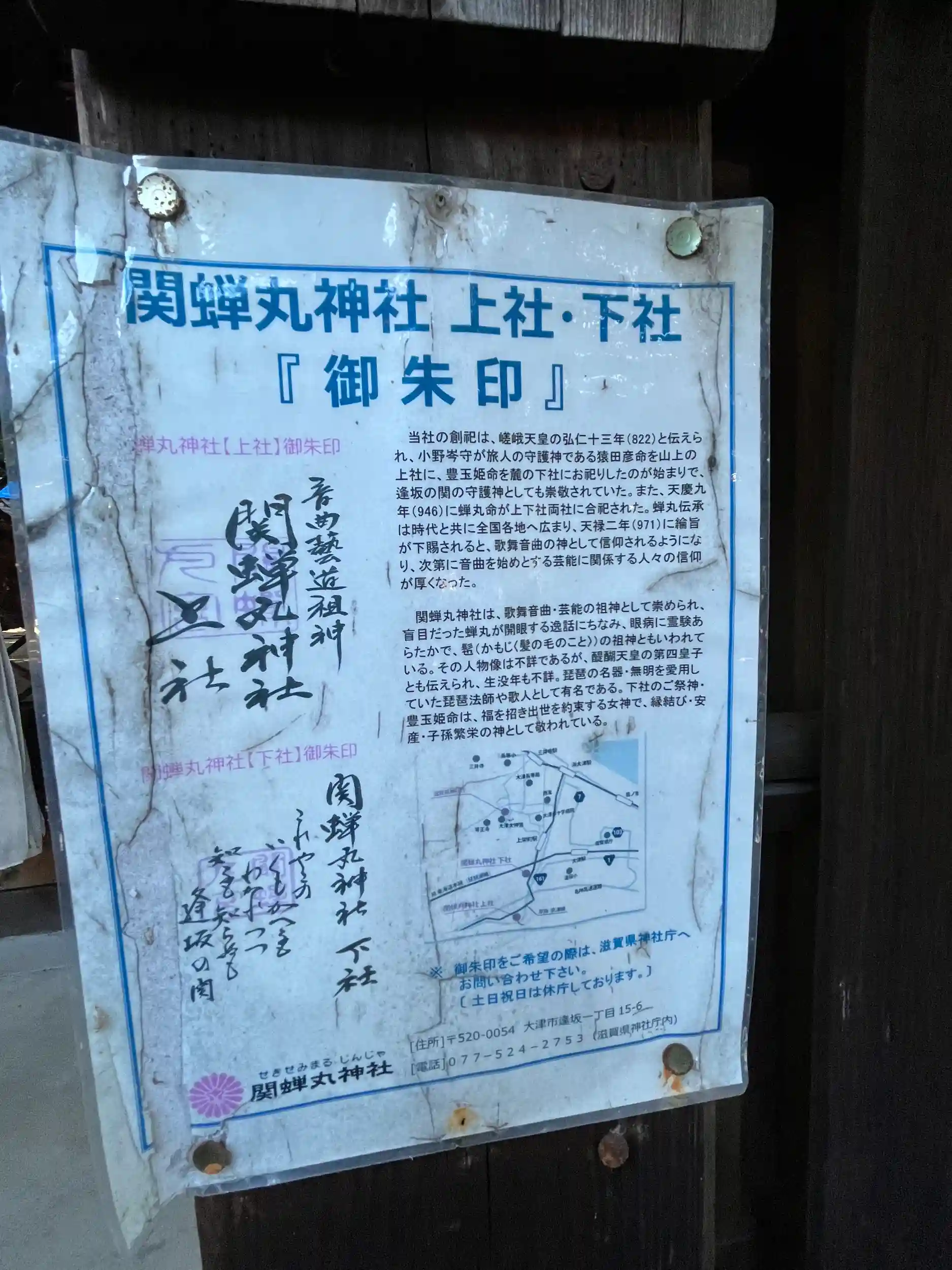 関蝉丸神社 上社、下社の御朱印案内書き