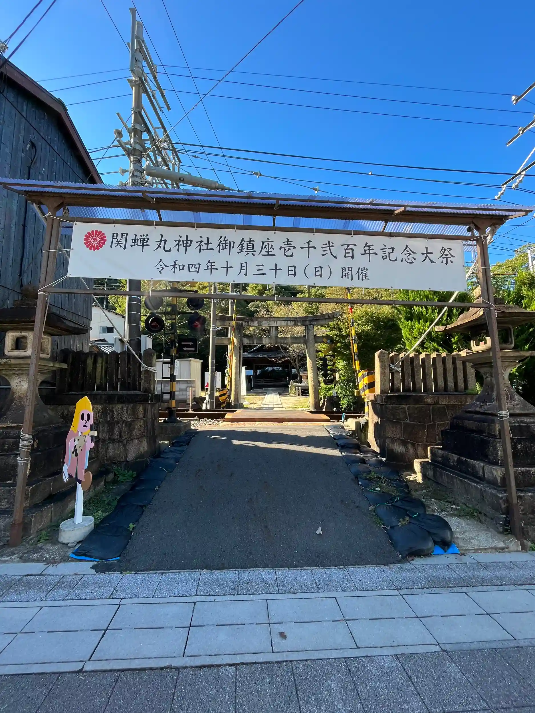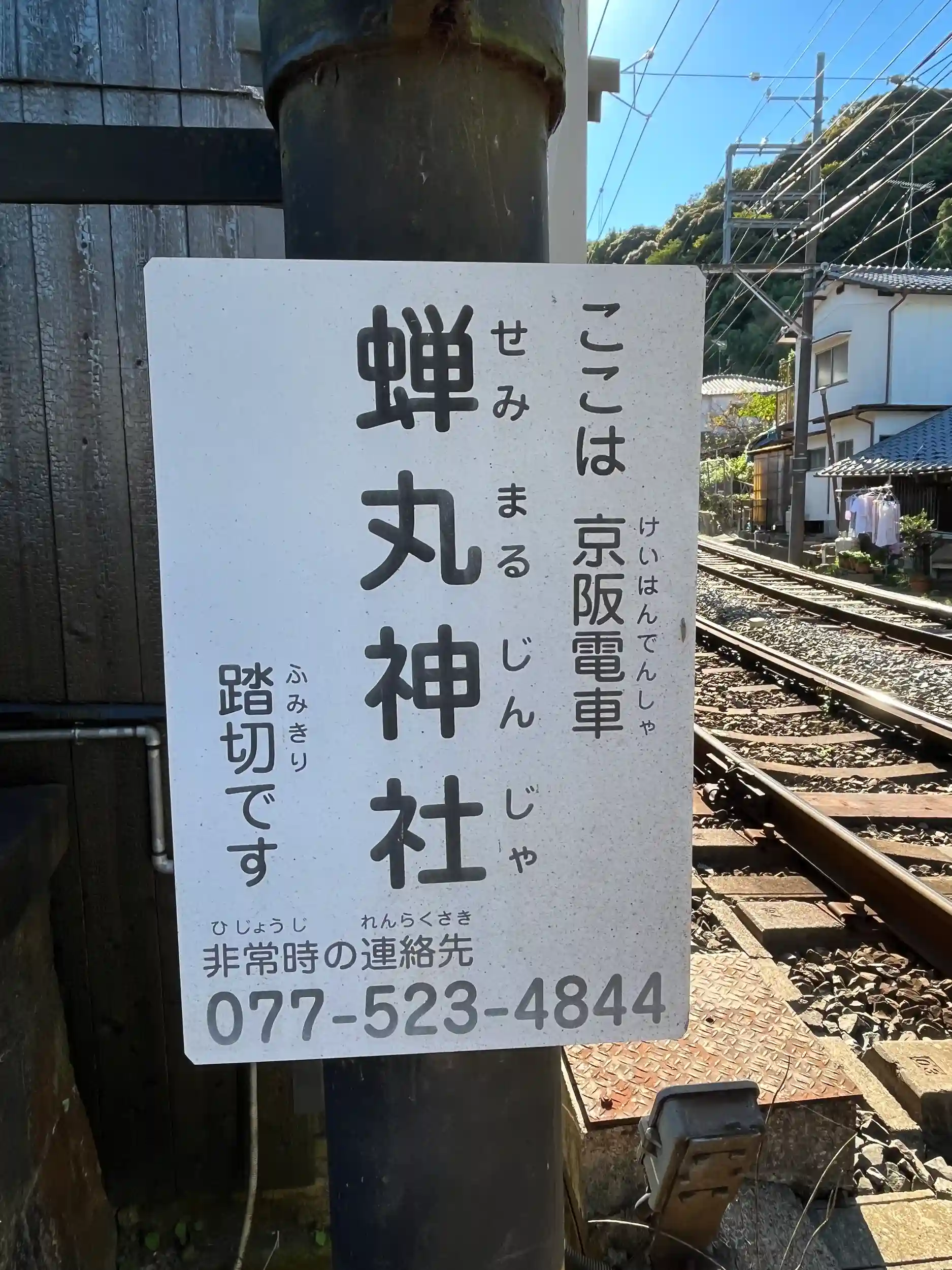 蝉丸神社下社に入るための踏み切り