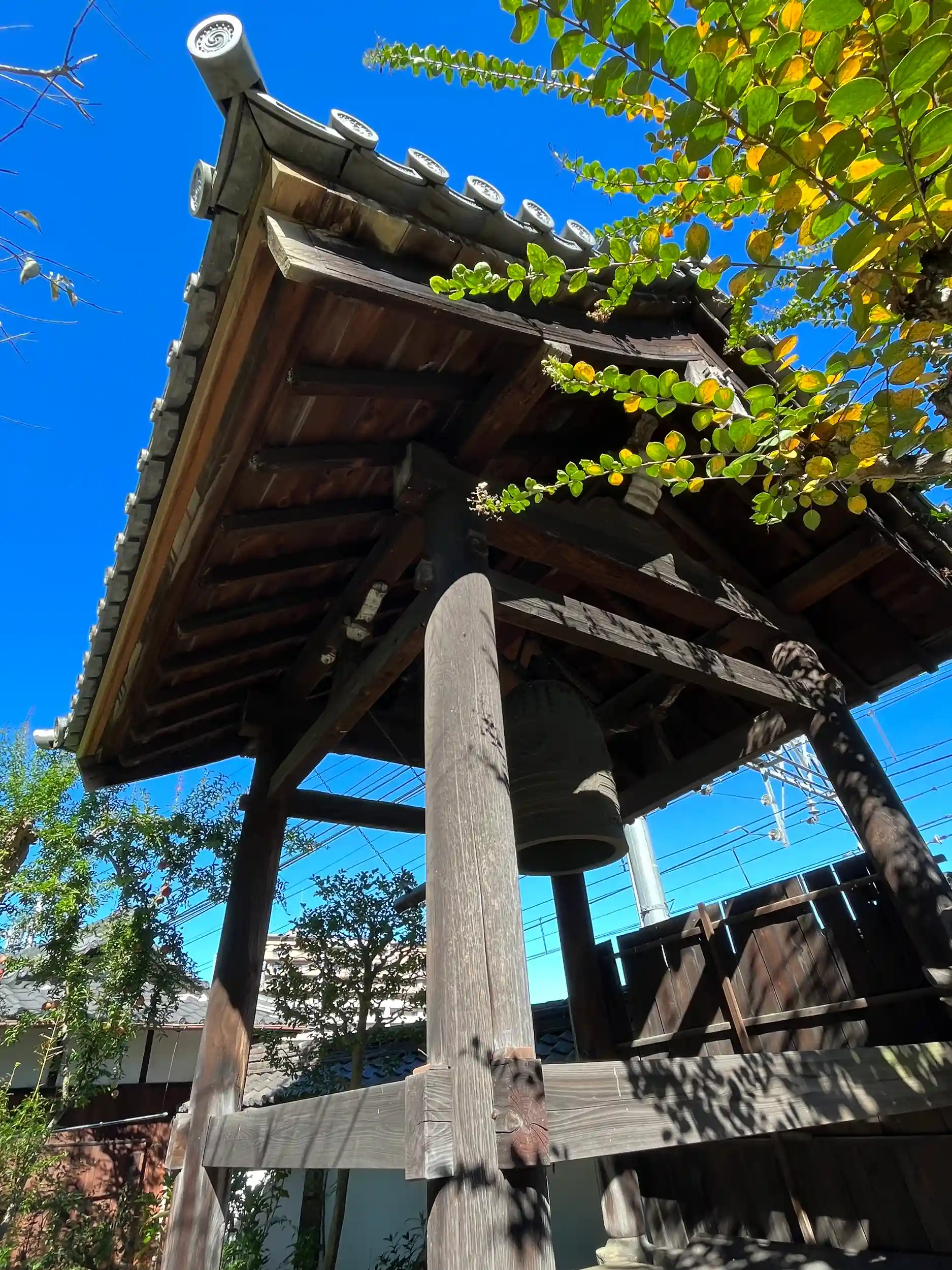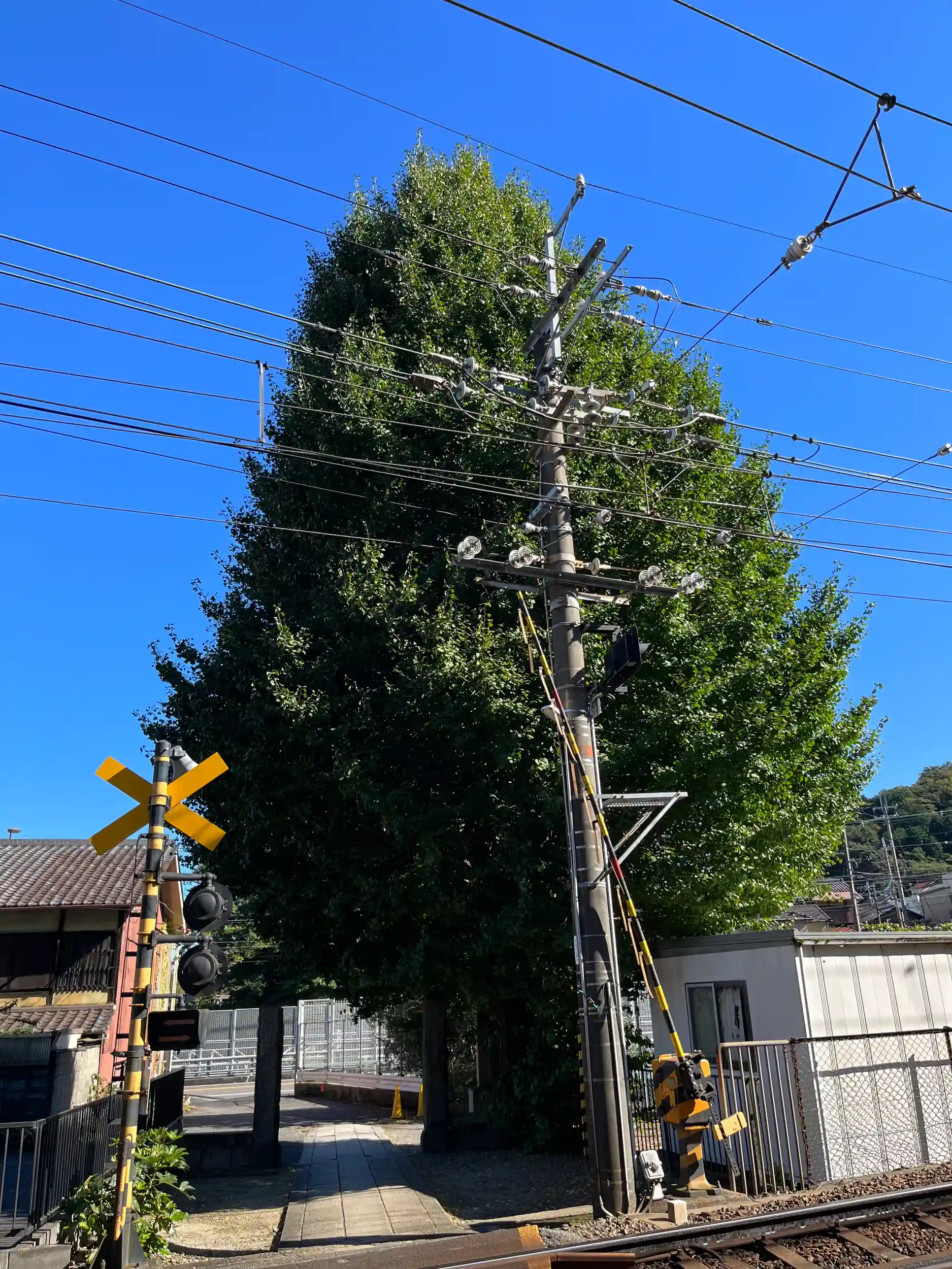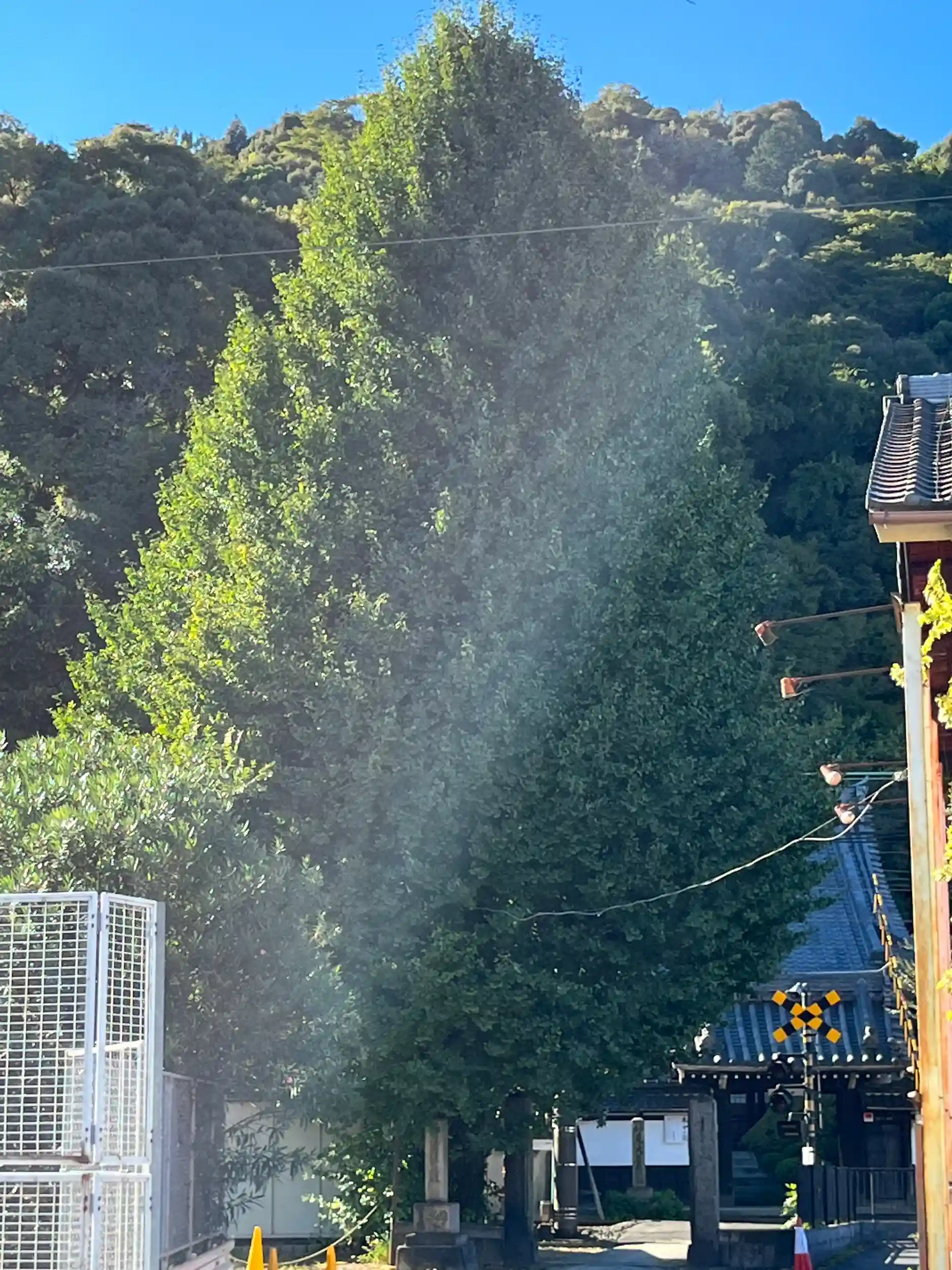 しばらく境内を拝見し、門を出て、踏切横の付近にある大きな銀杏の木に見惚れておりましたら、ご住職さまが帰って来られ、「今はまだ青々としていますが、これから黄色に色づくと綺麗になりますよ」と優しくお声かけ下さいました。