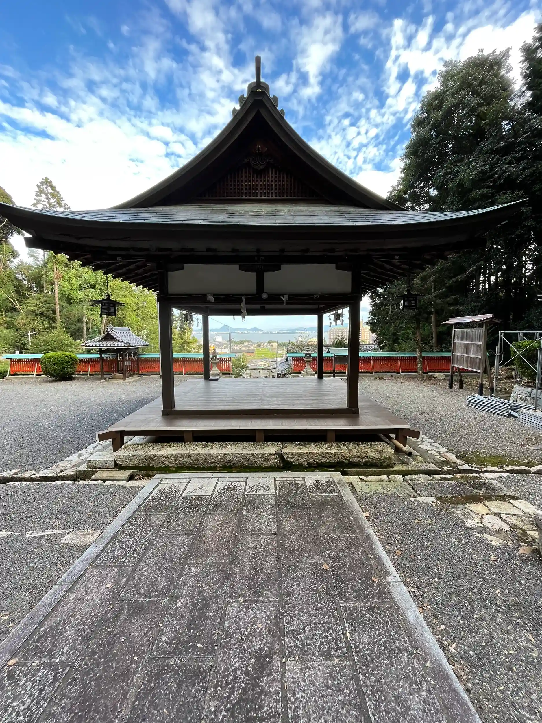 拝殿から見た琵琶湖