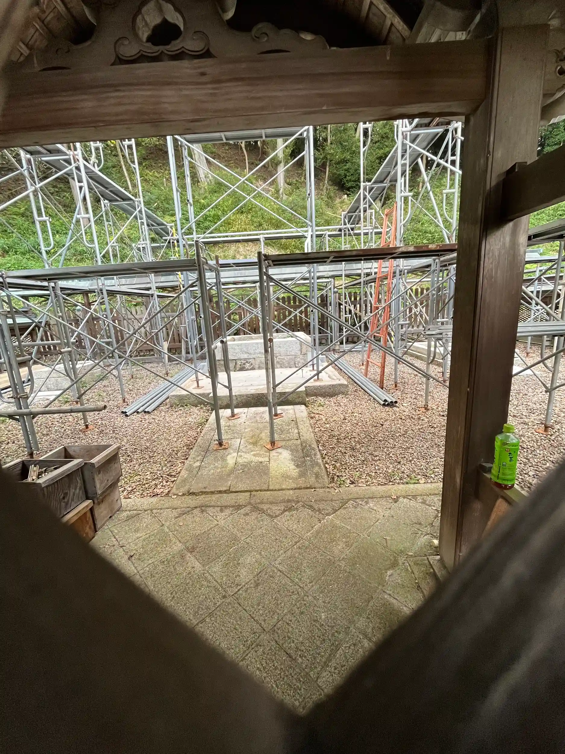 拝殿の奥に御本殿、御造営のため、只今工事中⛏