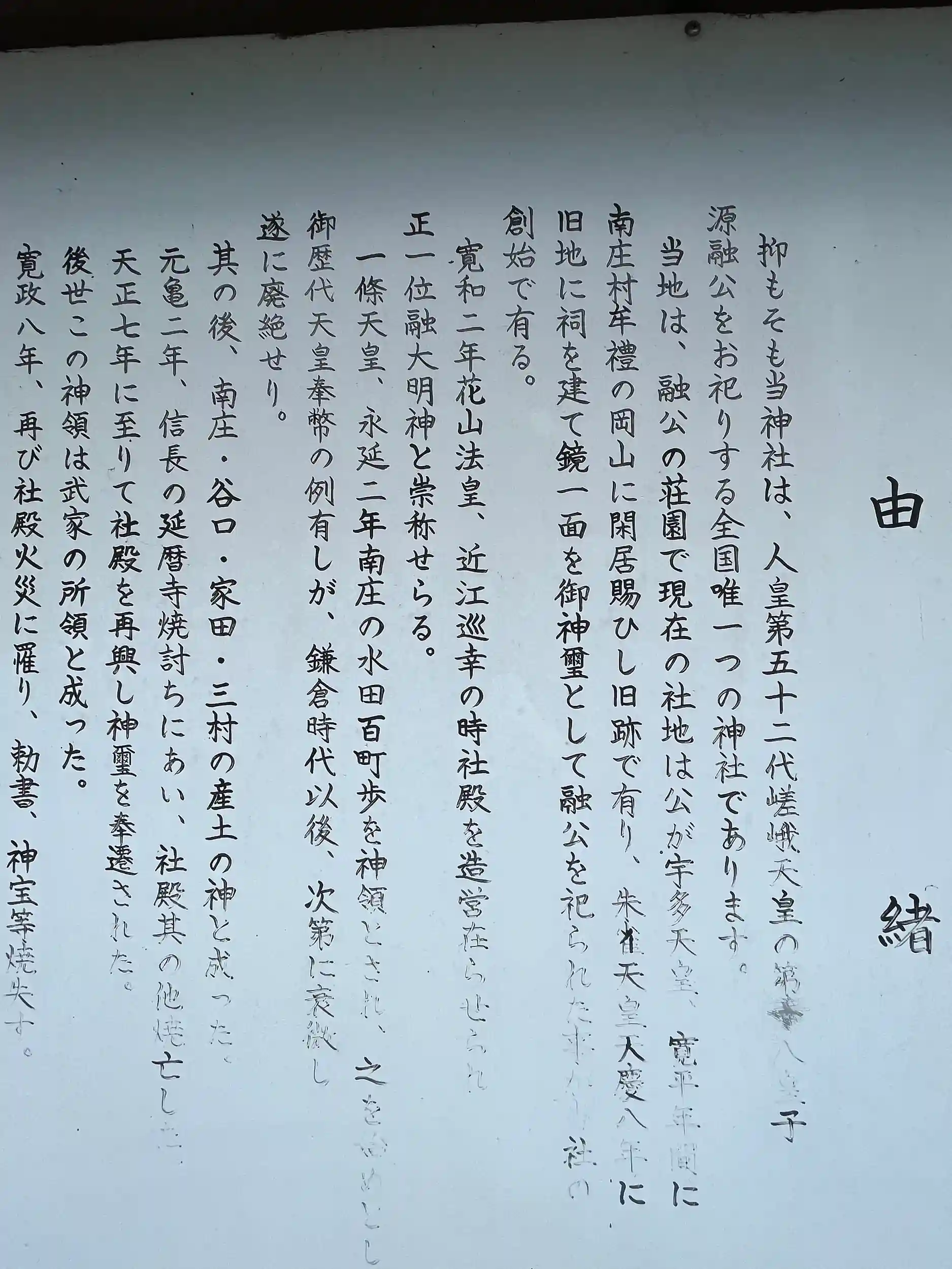 社頭にある御由緒書き