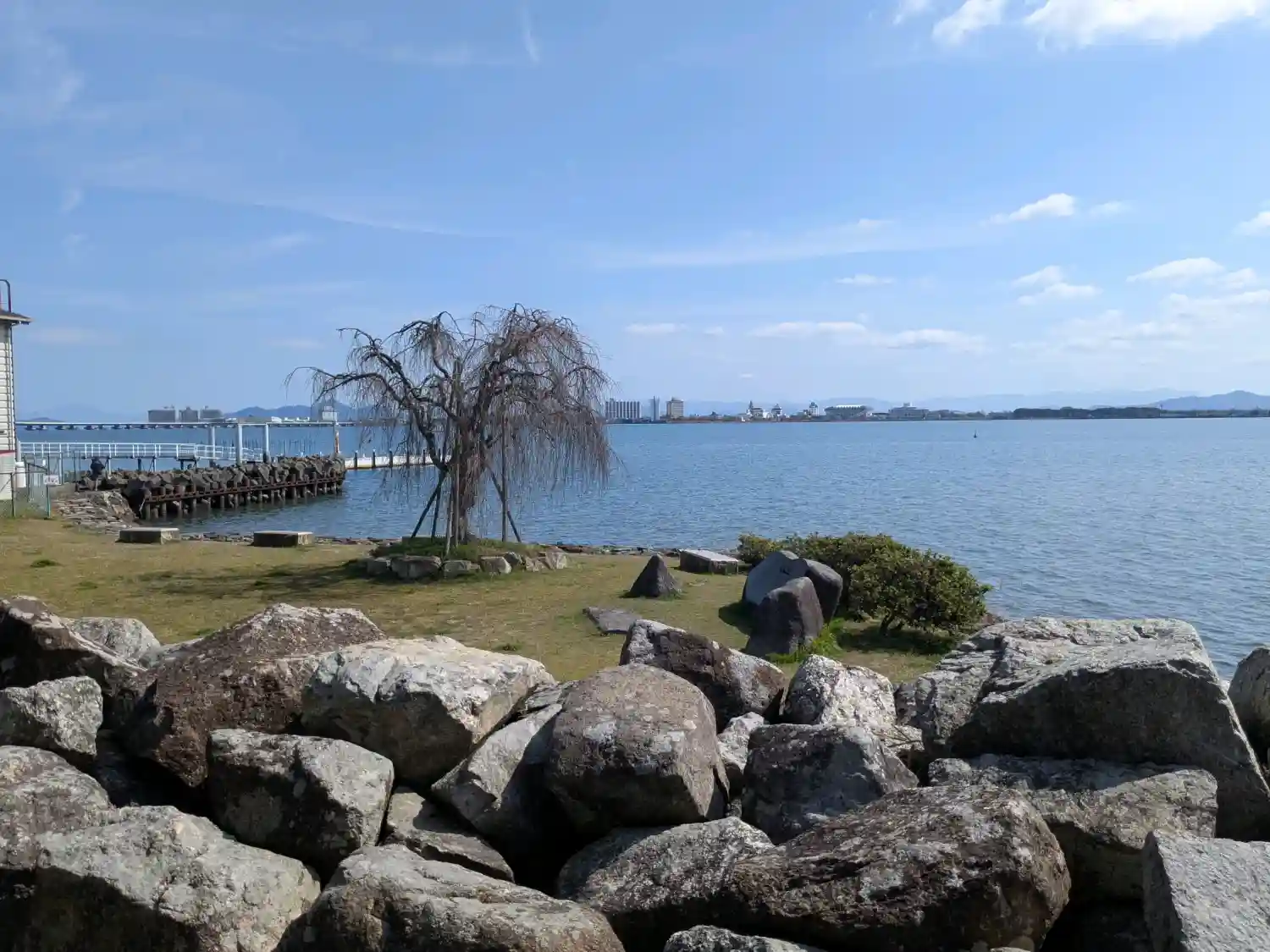 本殿裏から見える琵琶湖の美しさに見惚れておりました。