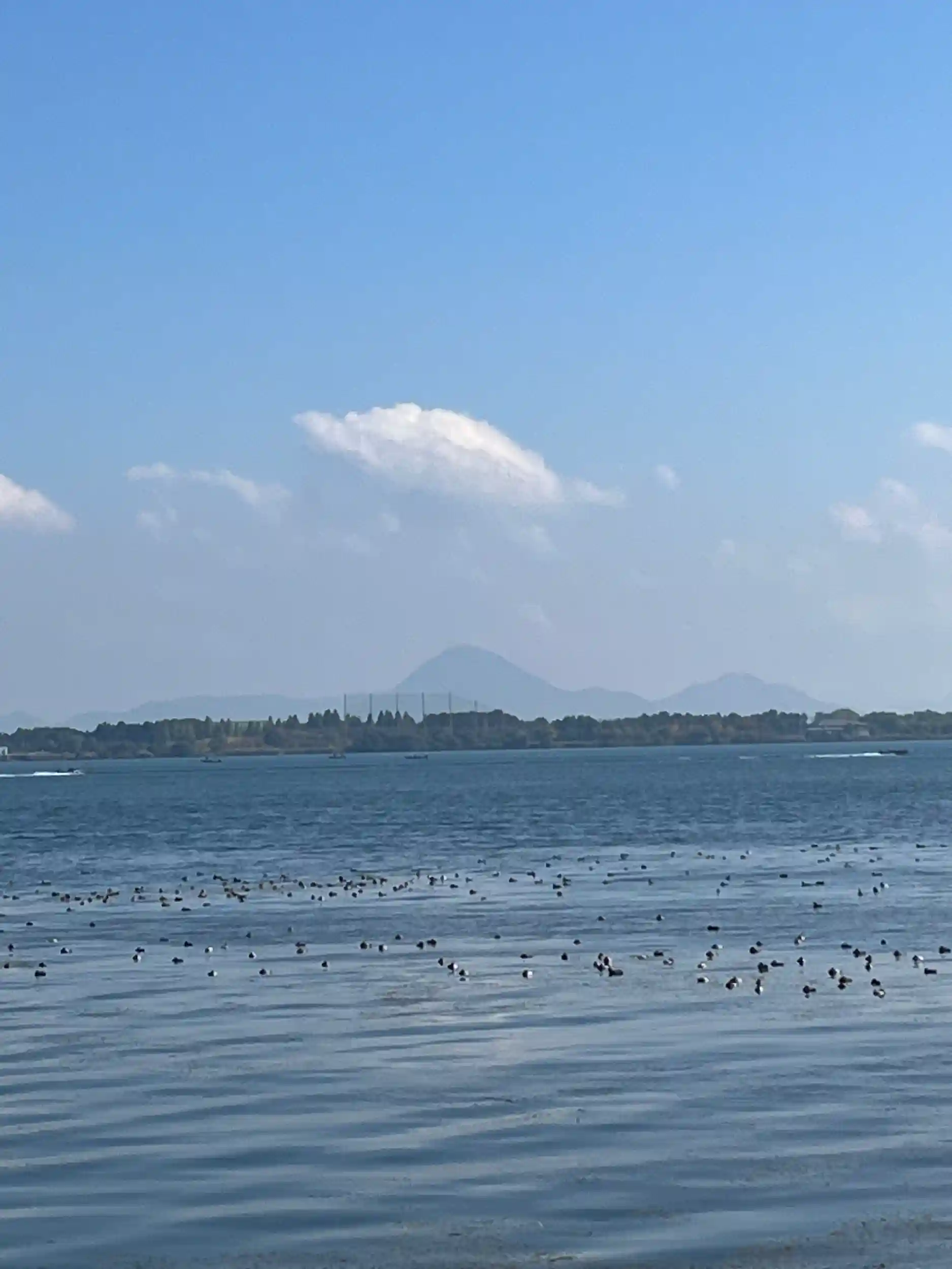 遥か向こうに見える三上山