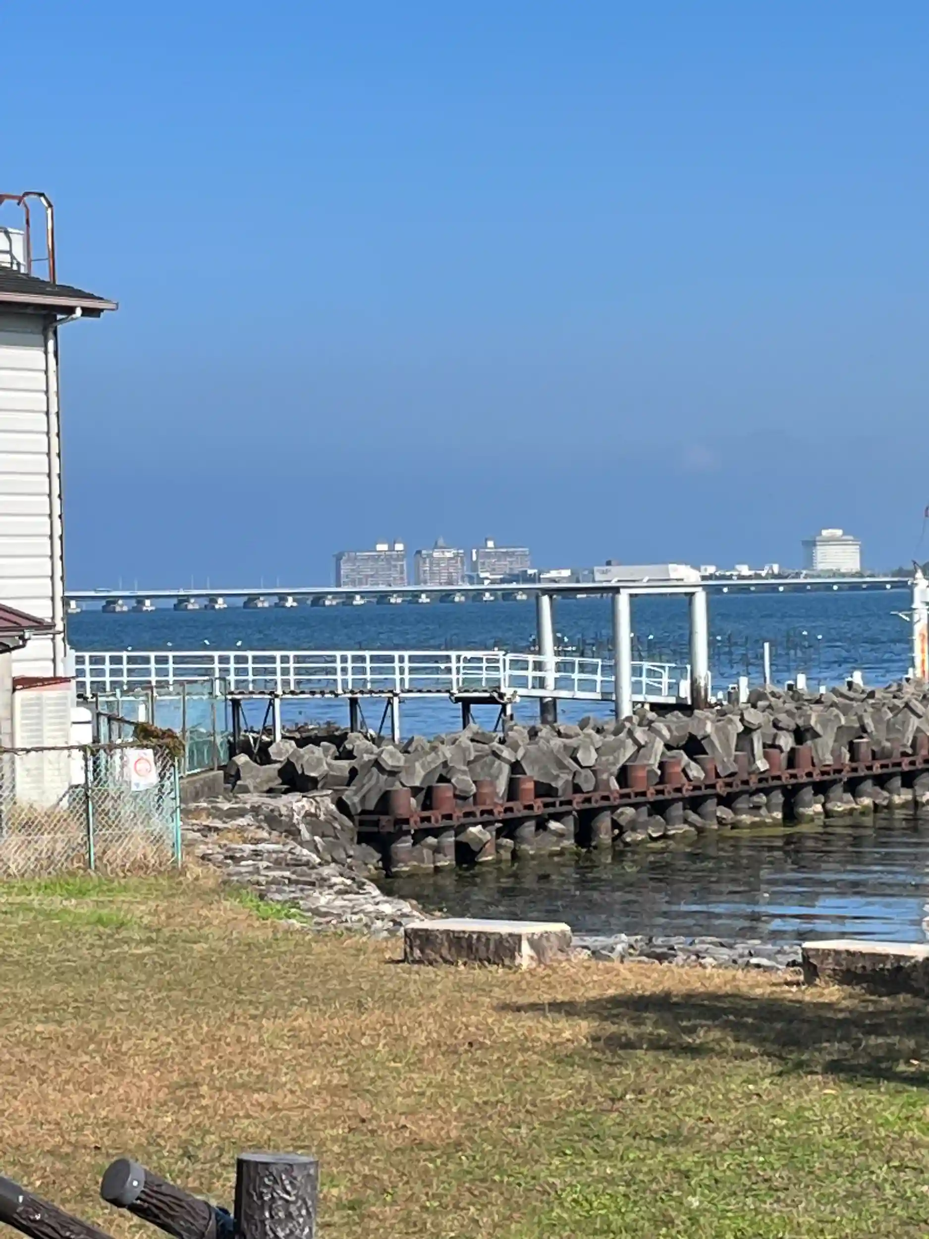 向こうに琵琶湖大橋