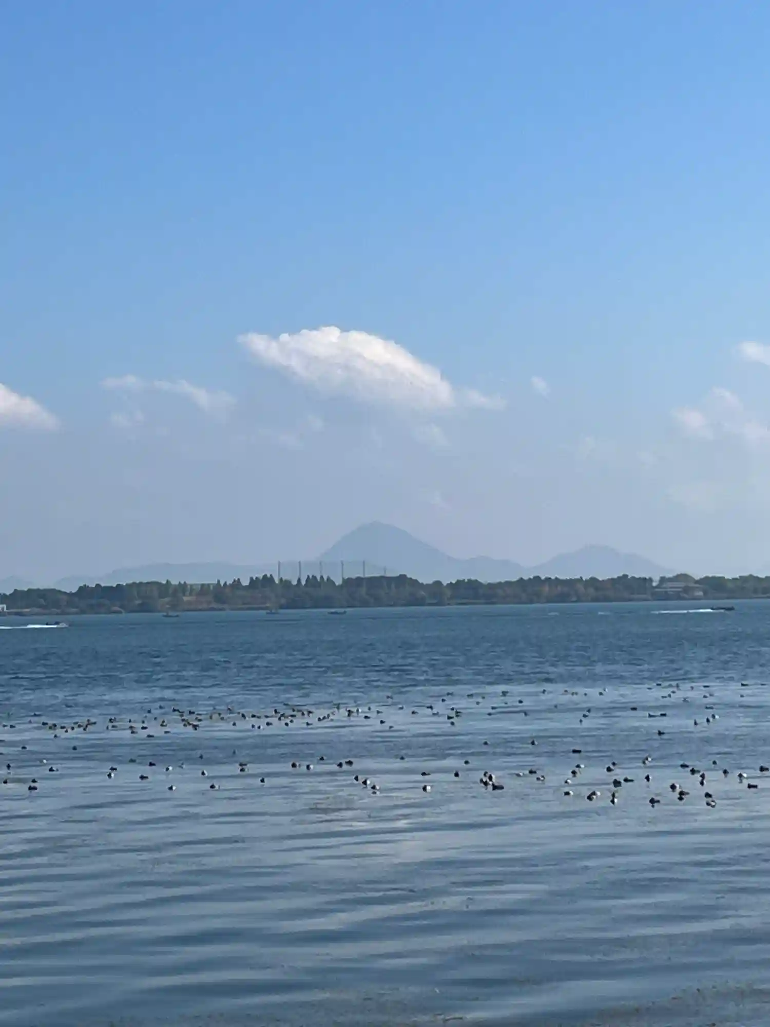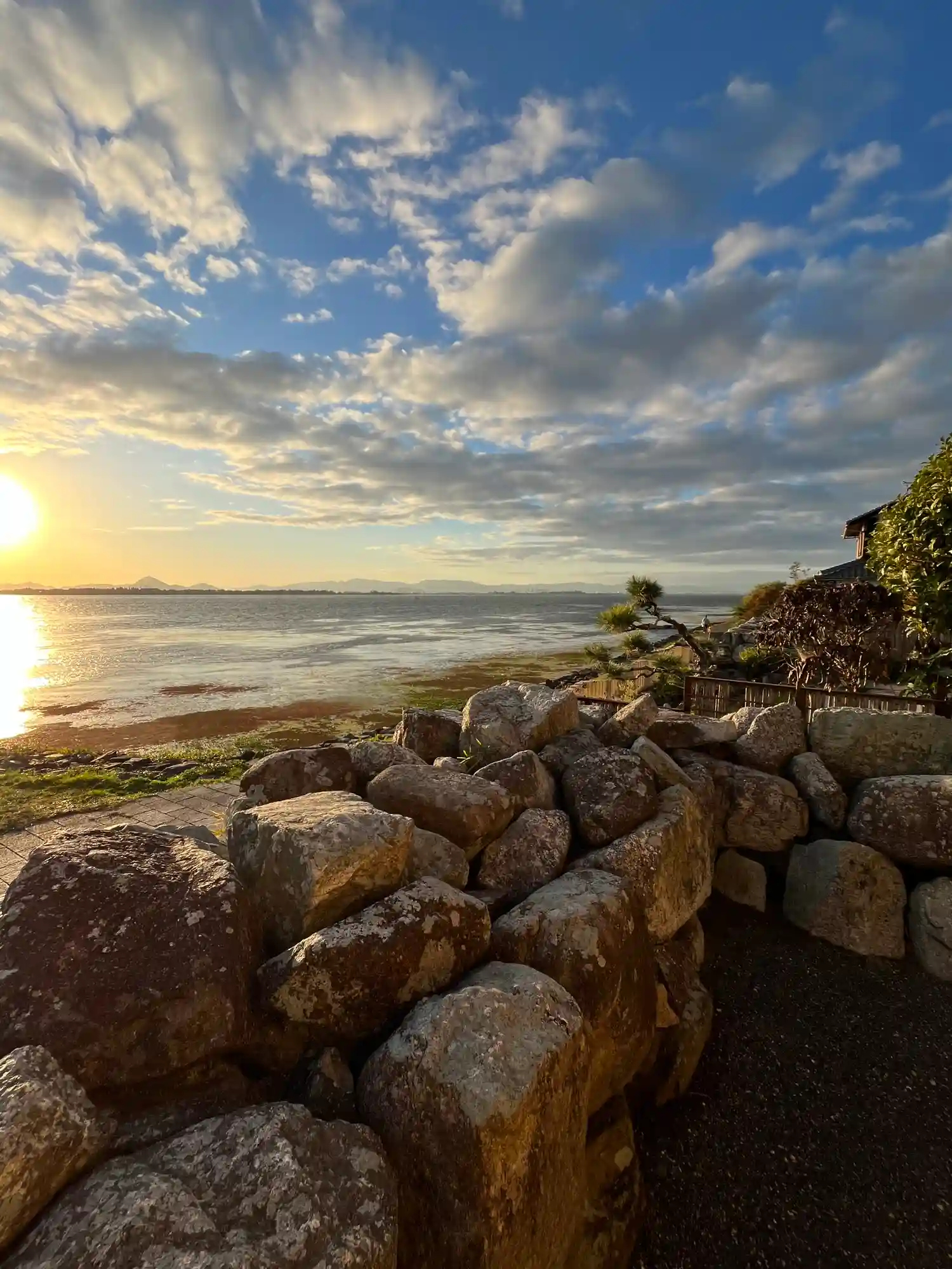 神社の裏は琵琶湖です!対岸の草津辺りかな。