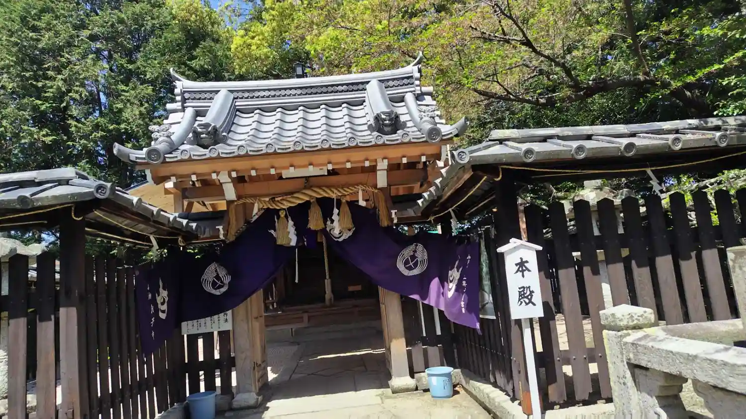 社務所にも幕が張られ、染め抜かれた社紋の双葉葵が映えて綺麗です。