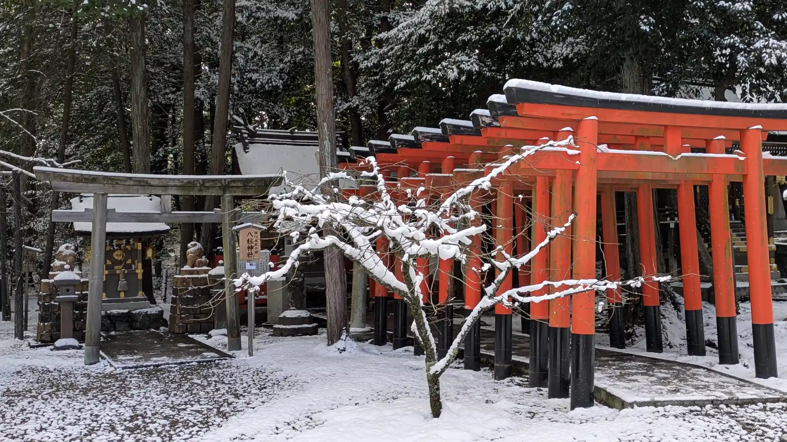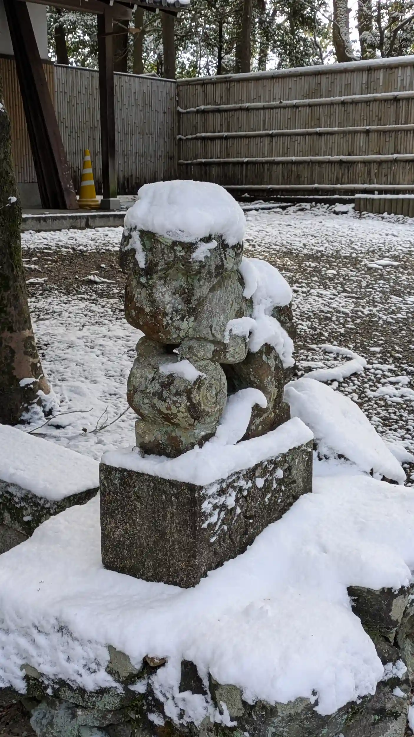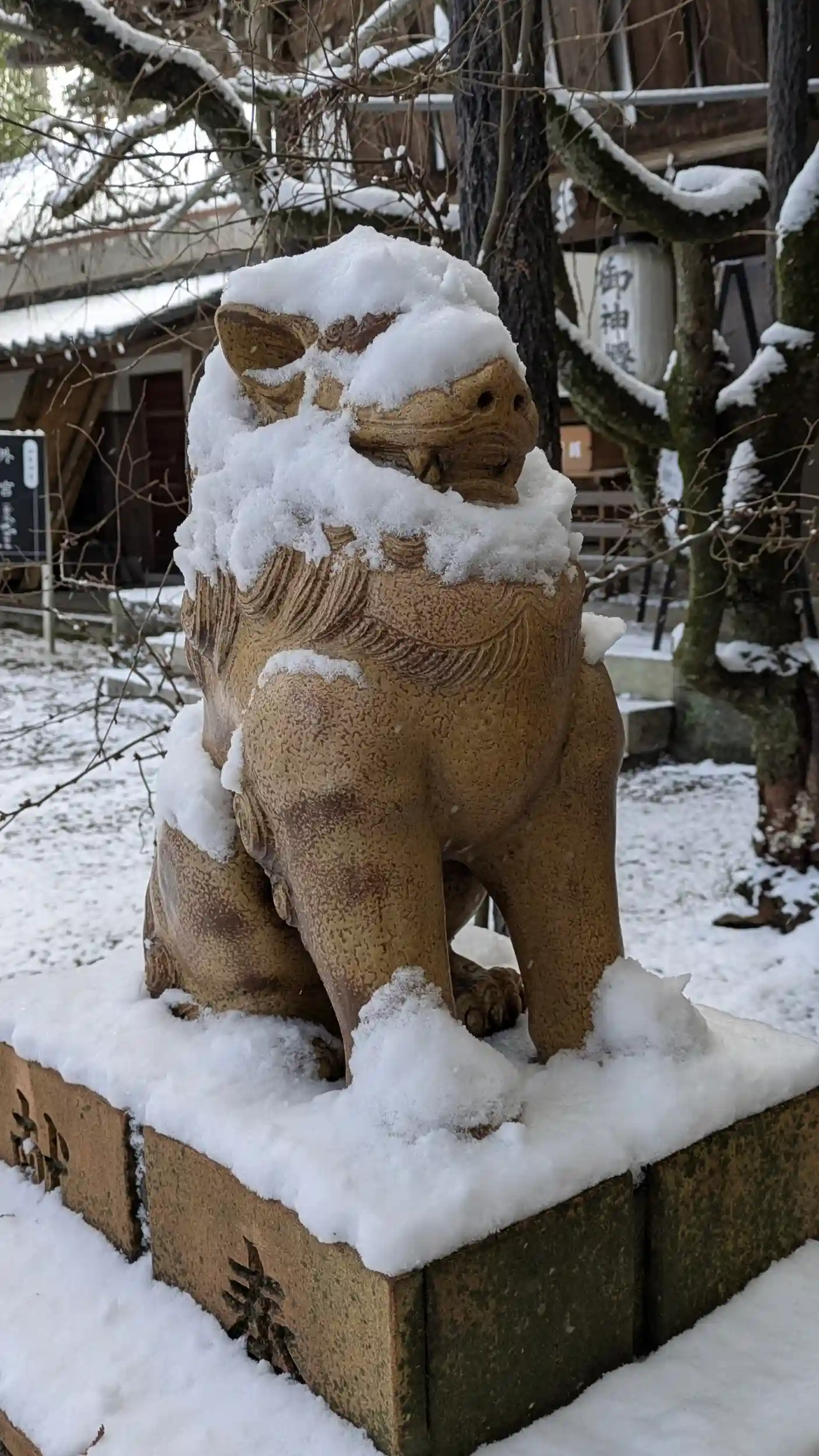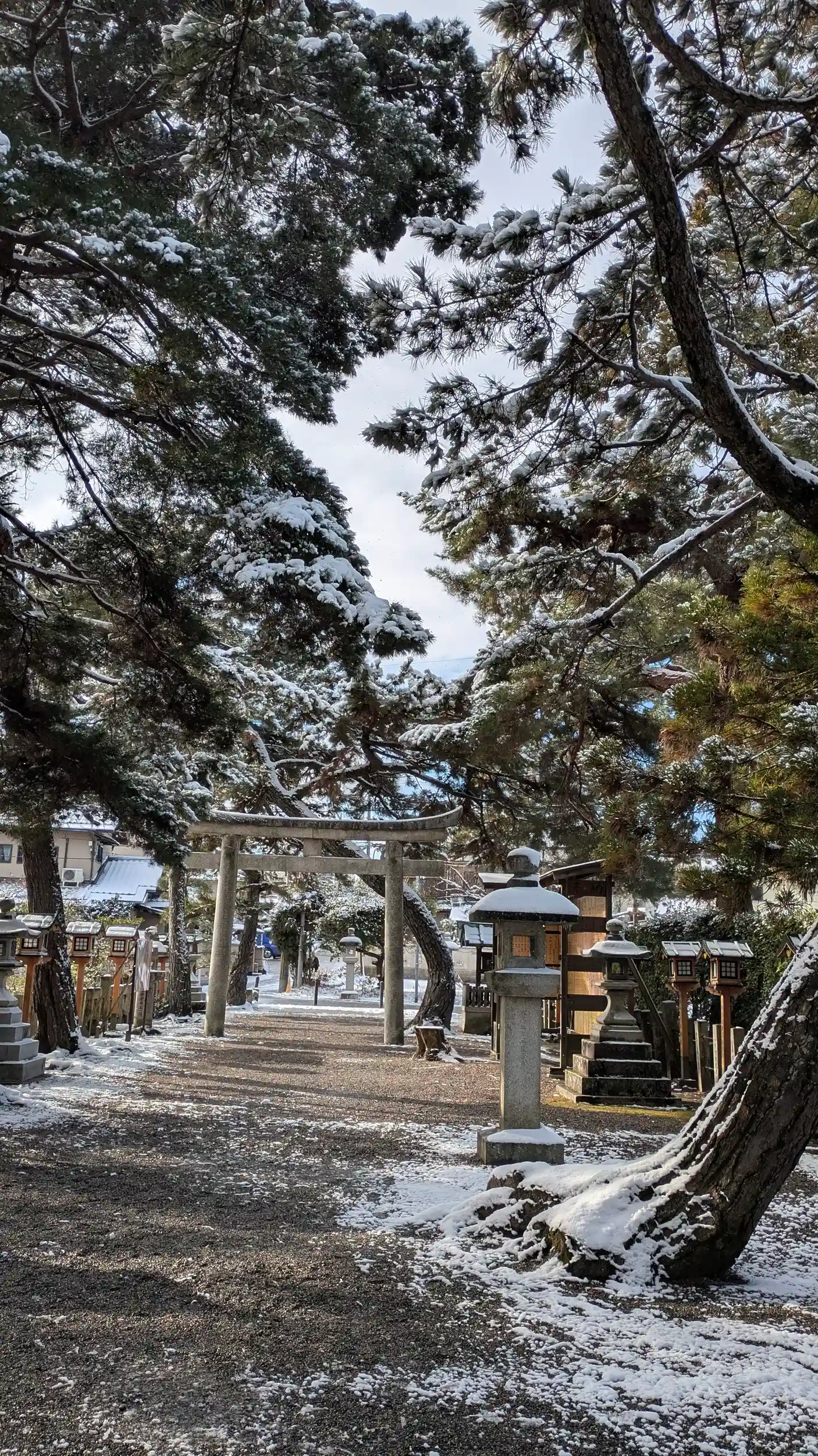 一夜明け、積もったなぁと早起きして建部大社へ・・・道路のいたるところがアイスバーン化しており車は大渋滞。一応自転車で出ましたがまともに乗れるところは少なく・・・。まあ雪道はわりと慣れている方なので気にせず歩いて向かいました。一の鳥居前からの参道は雪もほぼなく、路面も結構溶けており、スムーズに。参道もさほど雪は残っていませんでしたが屋根上や狛ちゃんは冠雪しておりました🤗足跡の数からしてもそれなりにお詣りに来られた人が多いみたいですね😊滋賀に来て初の雪景色。それなりに楽しめました🤗ちなみに2月19日の甲子は限定御朱印があるみたいです😲
