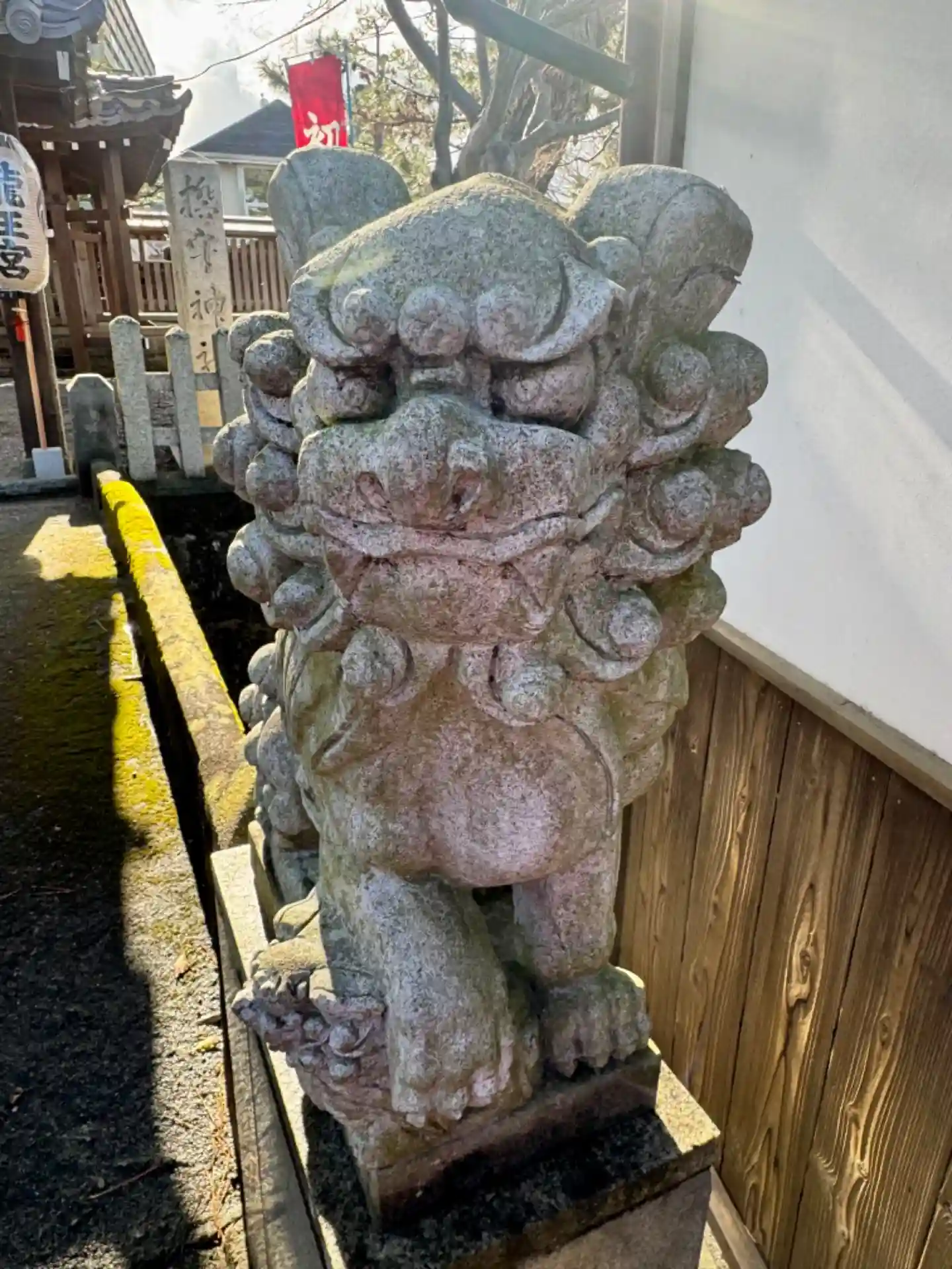 てまりを踏んでいる狛犬。