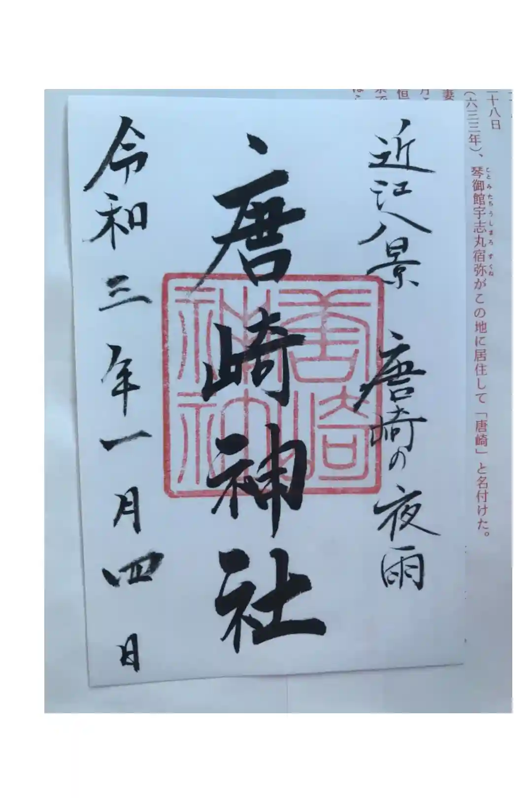御朱印です。駐車場がなく、迷いましたが、北側の唐崎苑という公園の駐車場に誘導