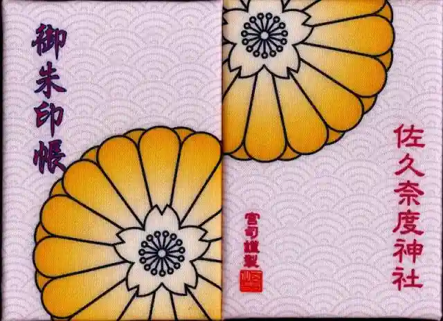 佐久奈度神社オリジナル御朱印帳です。宮司謹製でこれ以外にも沢山のデザインがありました。手作りの御朱印帳袋も付けて頂けます。