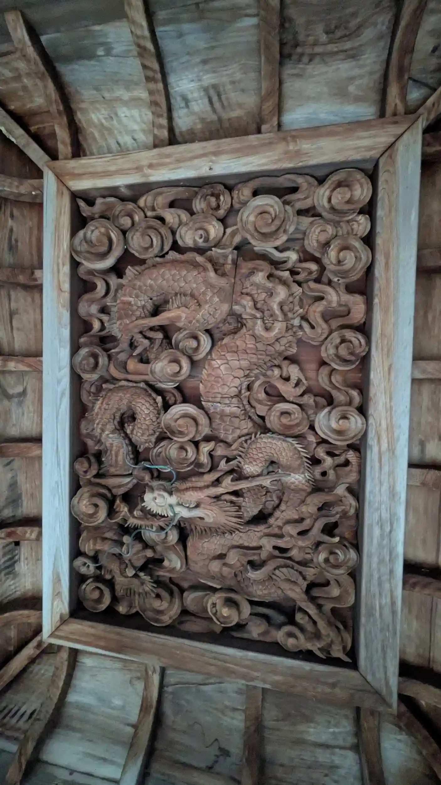 円照寺からやや北の戸隠神社へ。そういえば先に諏訪神社にお詣りしたけど信州の神社が二社近くにあるのはただの偶然ではないと思うのだが・・・。由緒もありましたがそのあたりの記述も特になく。御祭神は天手力雄命。参道はまたも階段があり、小高い丘の上に境内があります。一帯は「平津の森」とよばれ、緑に囲まれています。本殿お参りして何気に天井画気になり上を向くと!!見事な龍の彫刻が😲見事な雲龍でスマホの写真でもその立体感がわかります。これはぜひ実物を見てもらいたいですね😅石山寺からも近いので興味のある方はぜひに。