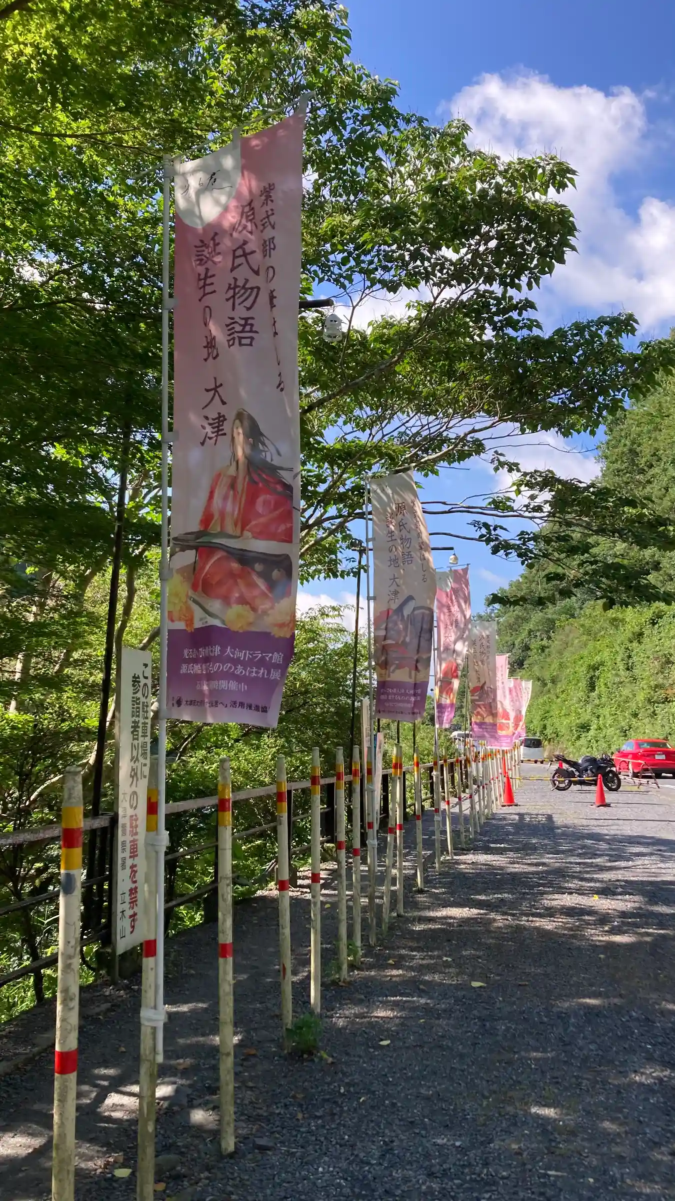 立木山本坊から自転車で瀬田川沿いに南下。しばらくすると交通整備の姿とと河岸沿いの駐車場にいっぱいの…