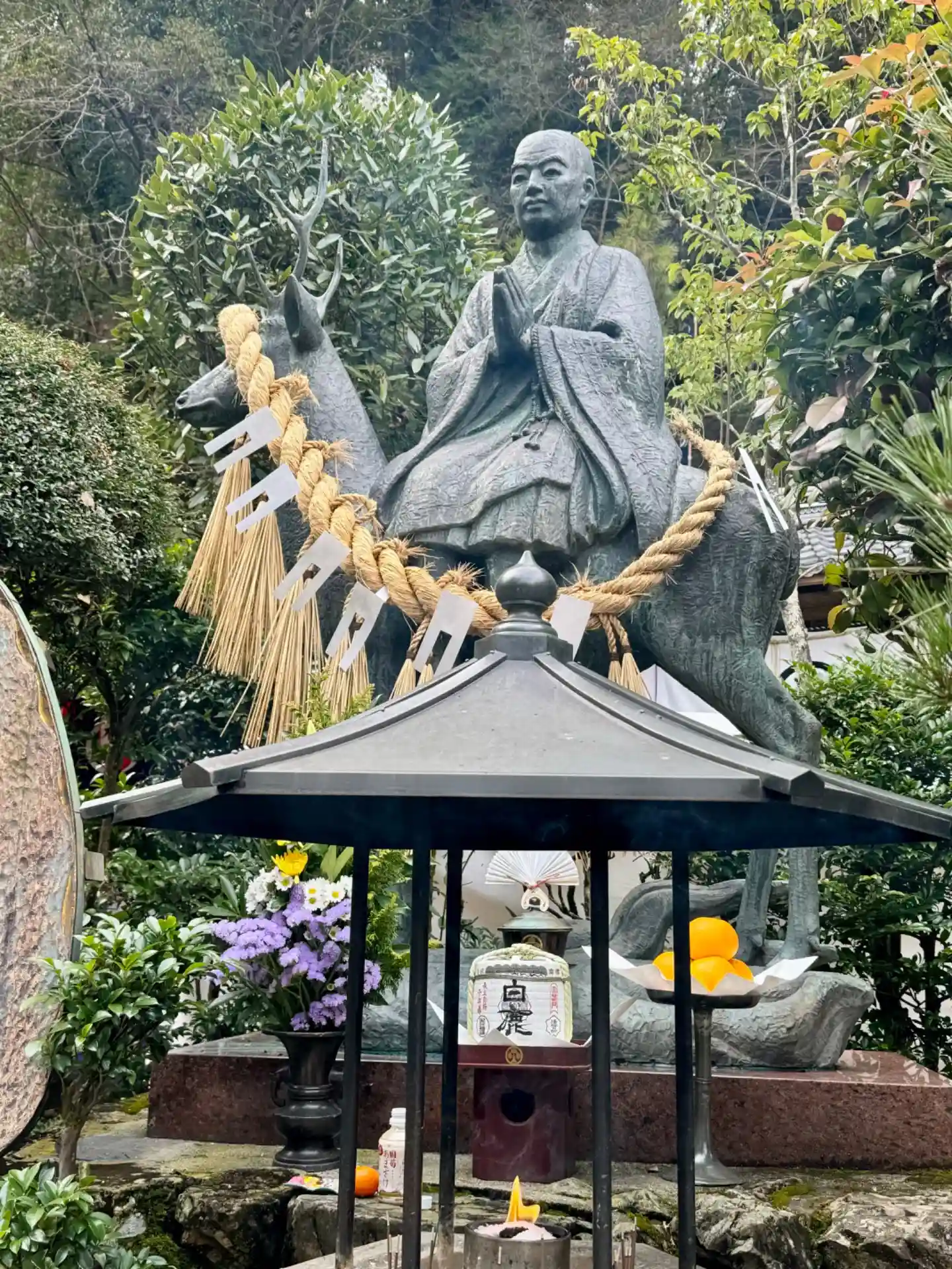 参道を登るとシカに乗った弘法大師さんがいらっしゃいます