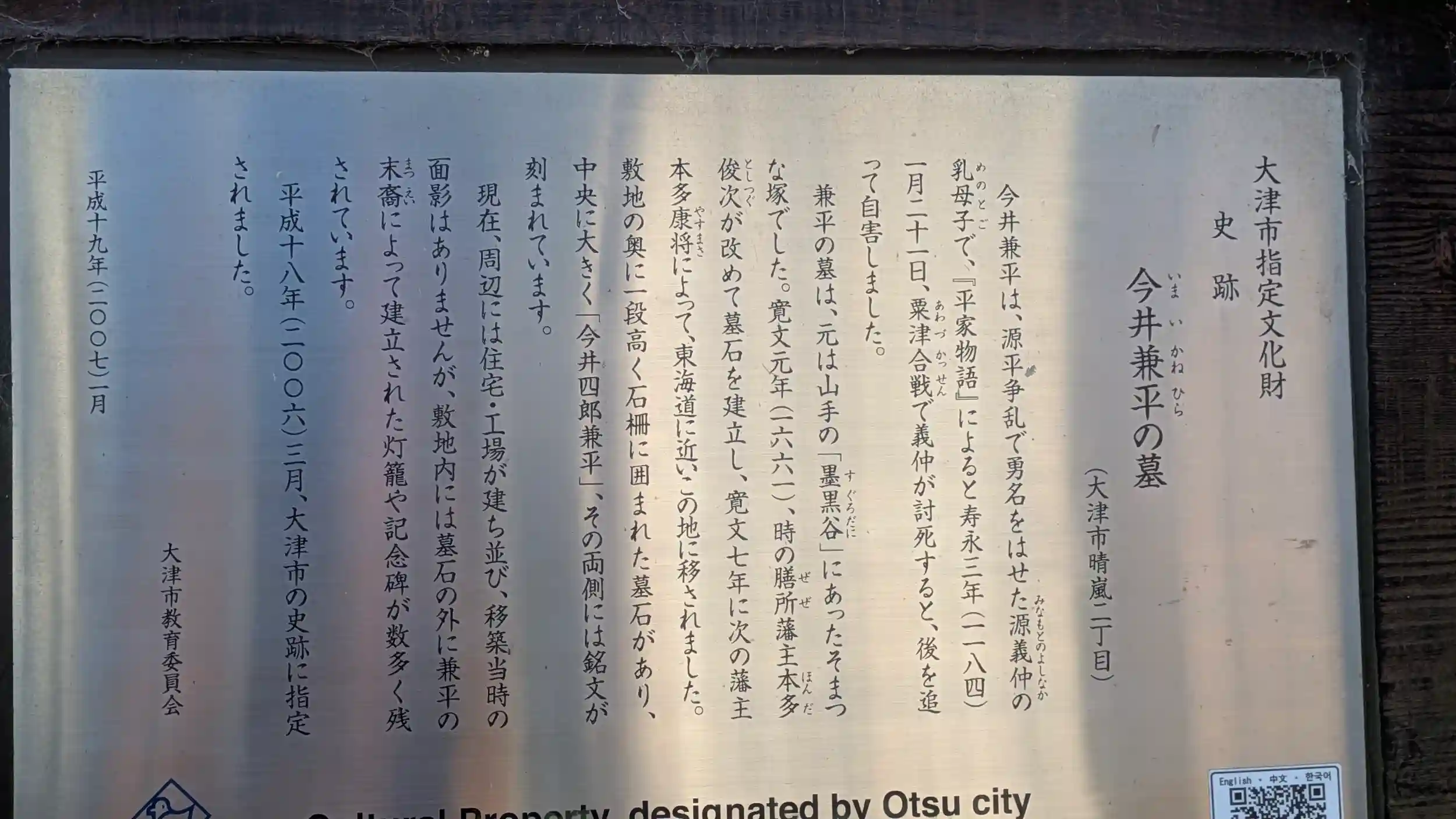 大津市指定文化財・史跡案内板: