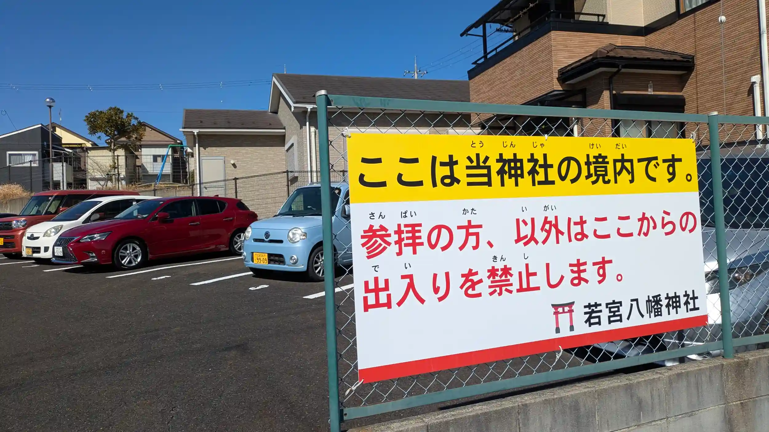 GoogleMapでお見掛けした若宮八幡神社へ。境内前は駐車場となっており、参詣者以外の出入りは禁止しますとでっかく書かれていました😲駐車場の奥に鳥居と小祠がありました。若宮さんなので御祭神は仁徳天皇か応神天皇なのでしょうけど情報無く断定はできず・・・。お詣りのみさせていただきました。