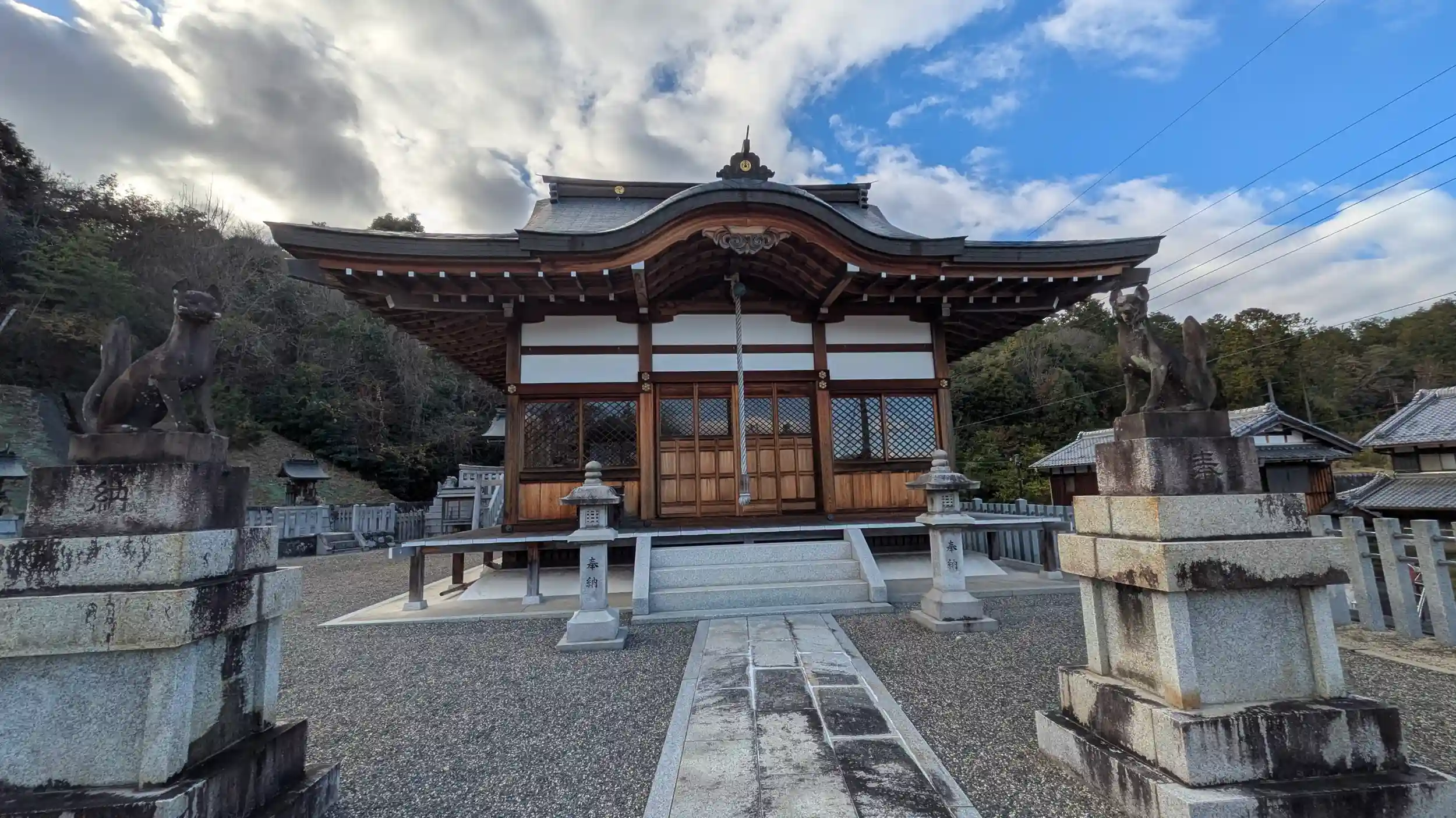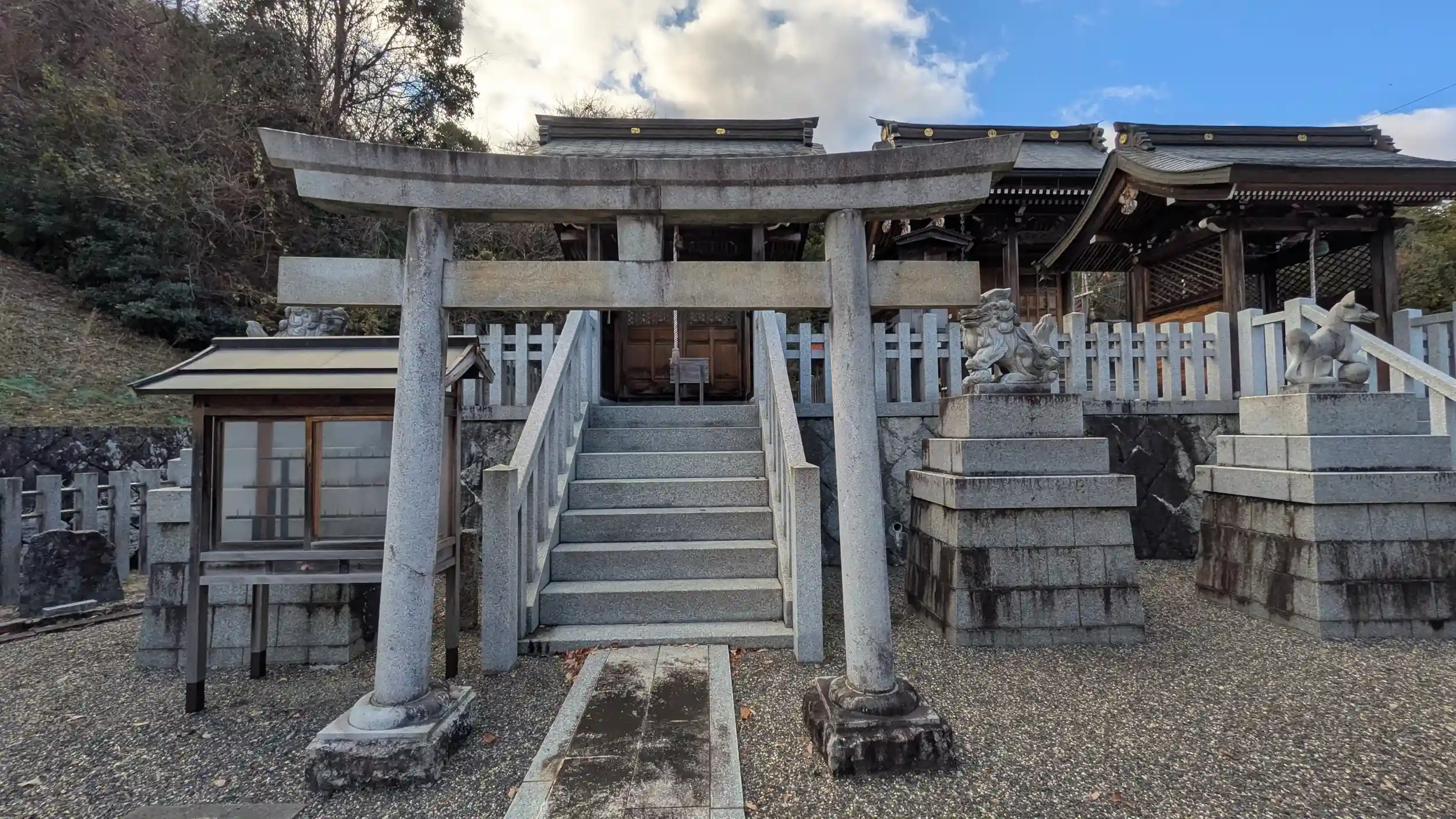 GoogleMapでお見掛けし大鳥居町の稲荷神社・白山神社へ。参道入り口には稲荷神社の社号標と鳥居。白山神社は稲荷社の横に並んでいました。摂末社じゃないのかな?と思ったら南側駐車場からの参道にも鳥居と社号標があり、そちらには「白山神社」とありました。大戸川ダム建設に伴いこの地に遷宮を余儀なくされたようです。ただ、その後国交省はダム建設を凍結・・・😱ネット情報を見ていると白山神社を見落としている記述が多いですね😅滋賀神社庁HPには御祭神が「倉稲魂神・伊弉冉尊」とあるのでどちらも本社で間違いないだろうけど。平成9年に遷宮されているので全体的に新しく綺麗。結構立派なので参拝者いないのが勿体ないぐらいなのですが・・・😅ちなみにネット情報では二神に合わせて誉田別尊を祭神にあげているものもあったのですが・・・?正月とかなら宮司さん居てはるかなぁ・・・?😅