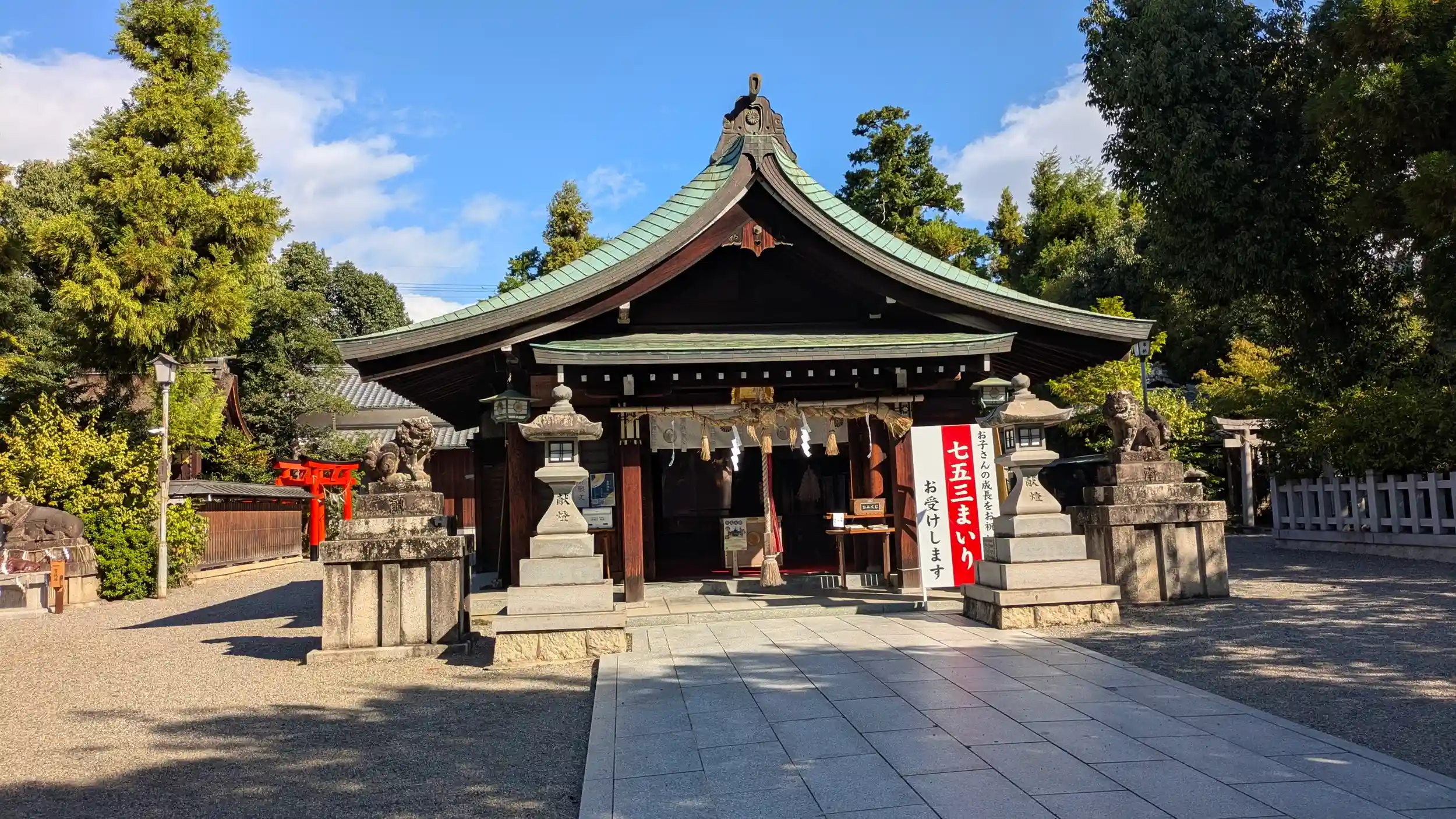 社務所横には七五三に向けてなんだろうけどなんであんぱんはキャラのまんまなのにネコ二体がリアル体型なんやろ?