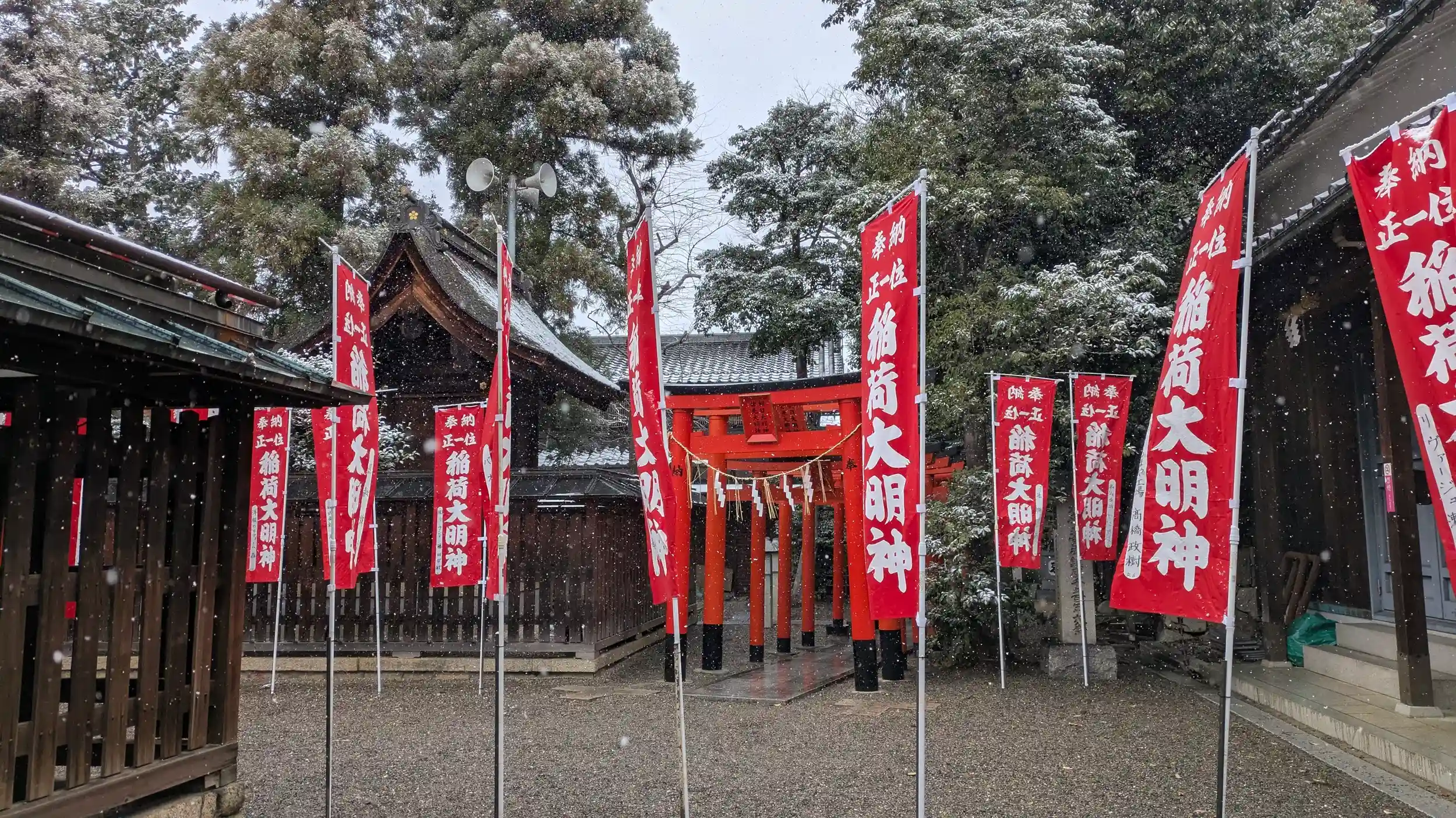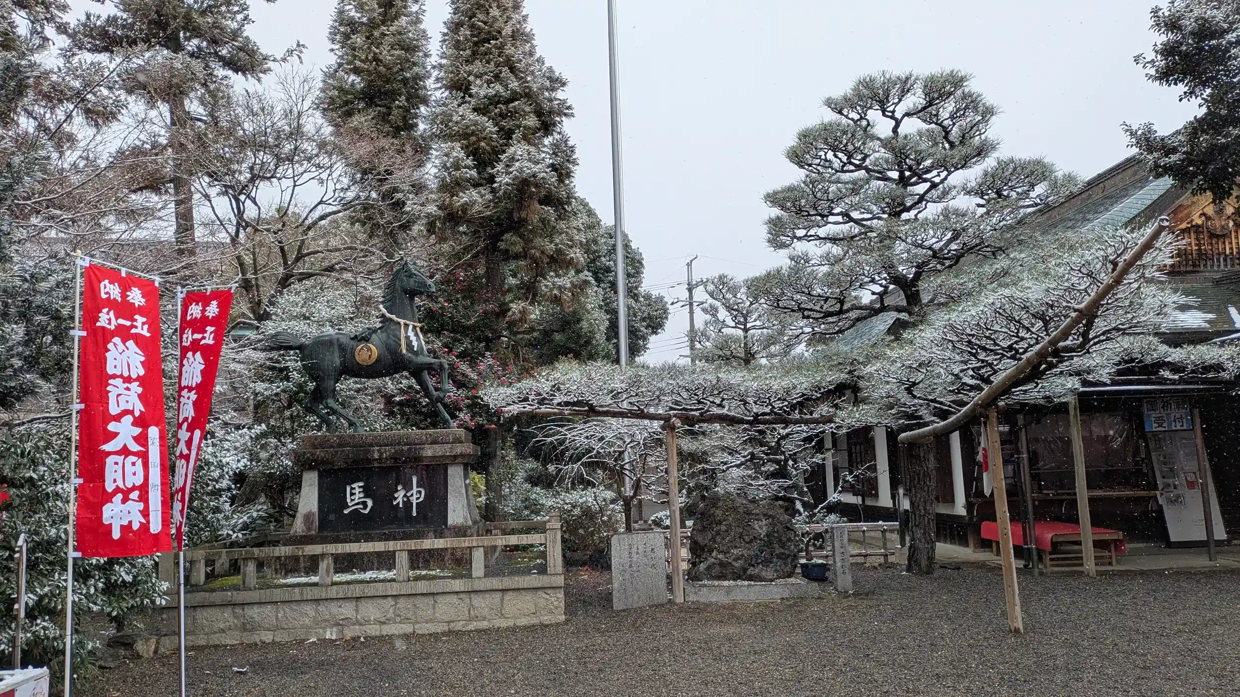 続いて萱野神社へ。こちらも当然ながら薄っすらレベルでしたが雪が降り続いていたのでもしかして😊と期待して帰りに寄ろうかと思いましたが期待以上に吹雪いたりしていたので断念😅