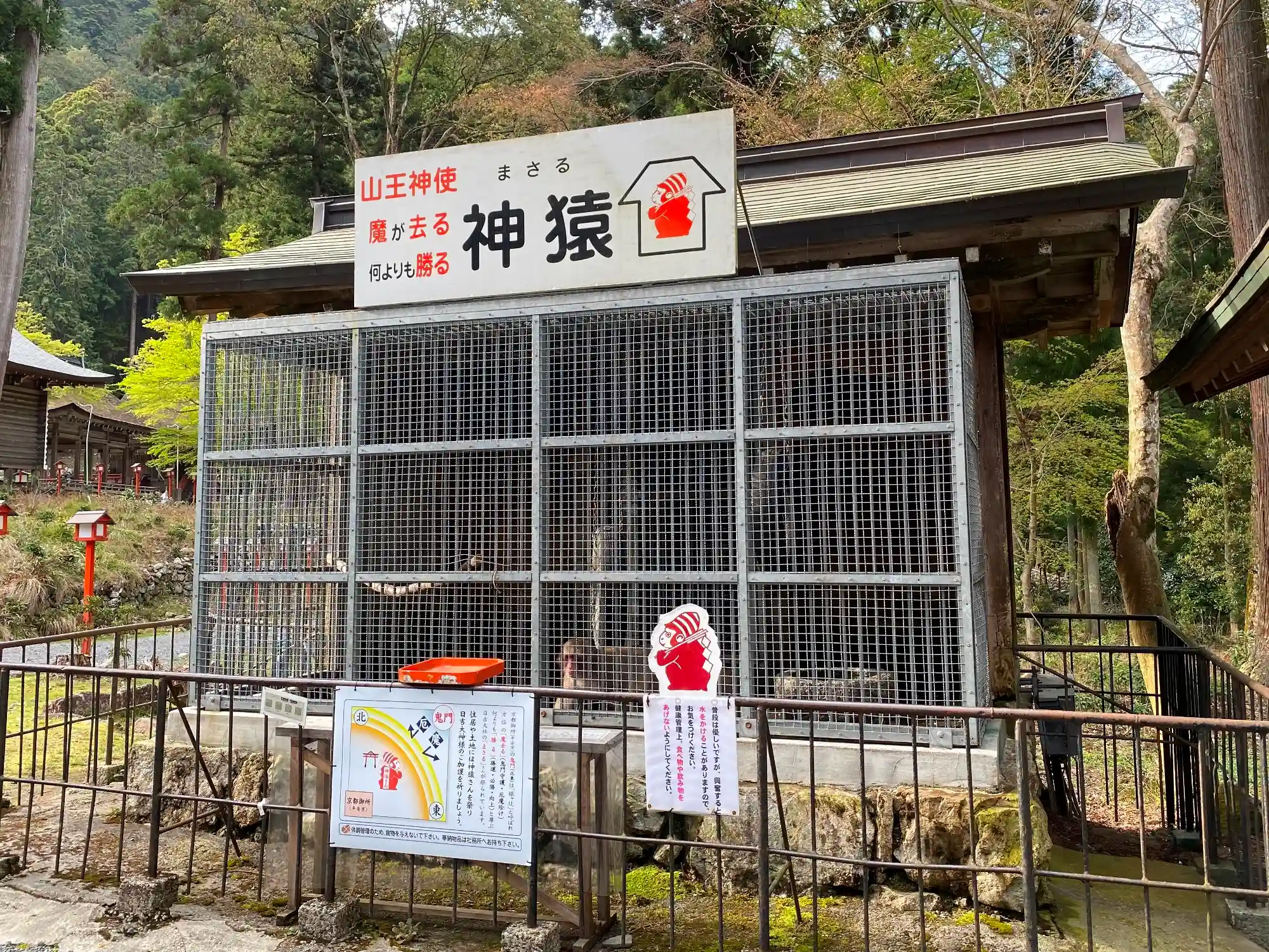 神馬舎の隣、こちらも有名、山王の神の使い<神猿>。神猿とかいて<まさる>と読む。檻の中には本物のおさるさんが2頭。