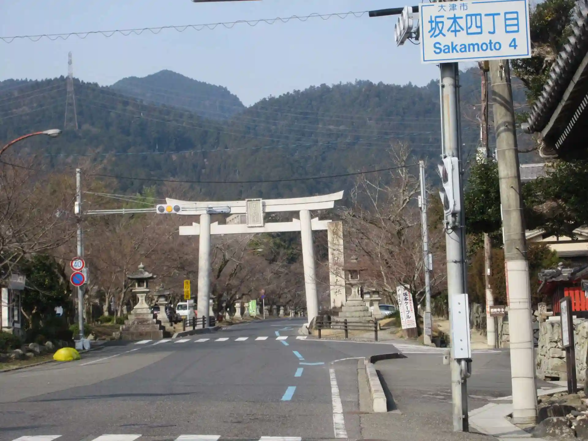 京阪線比叡山坂本駅を降りると、既に日吉大社参道であり、大きな鳥居があった。
