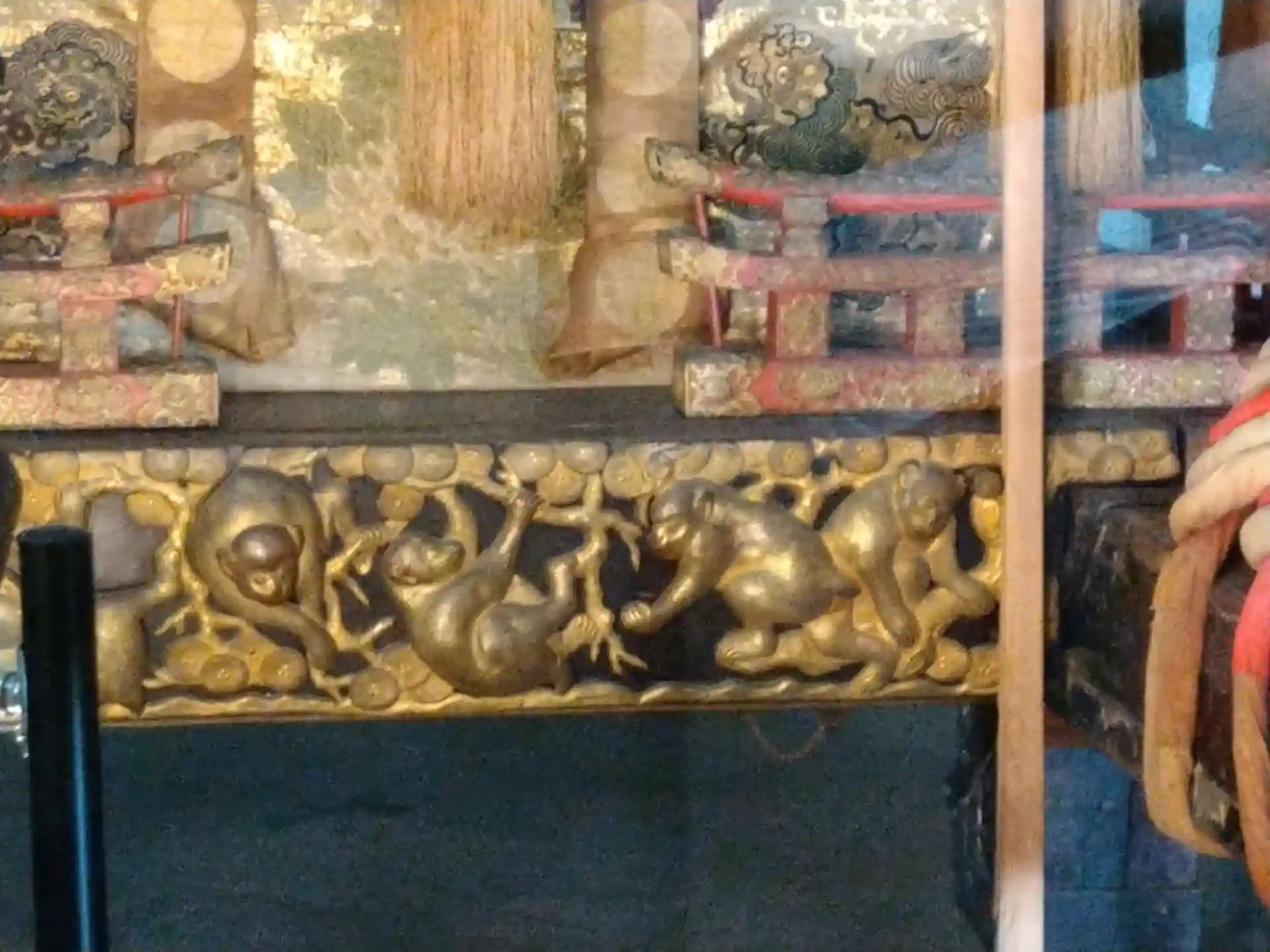 写真では見にくいですが、蟇股にも三匹の神猿さんがおられます。