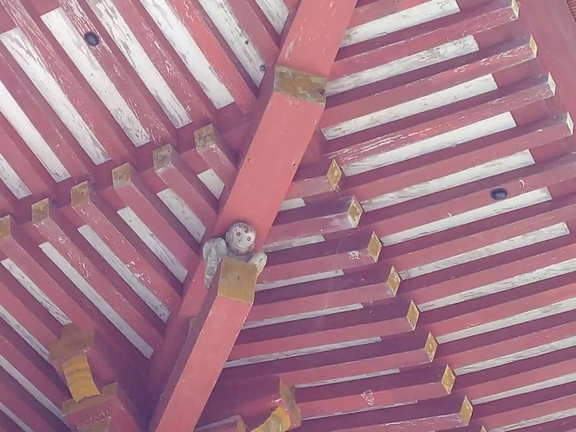屋根支えてくれている「棟持ち猿」