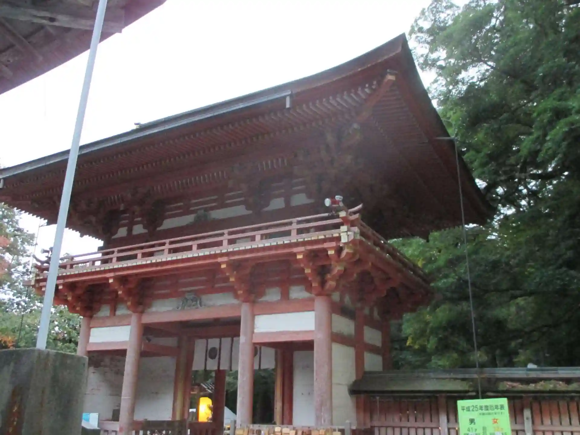 比叡山延暦寺に行き、帰りはケーブルカーで坂本に下りる。すこし歩くと日吉大社の入り口。もうすぐ夜間ライトアップが始まるらしいのだけれど、まだなので、境内はかなり暗くなってきている。