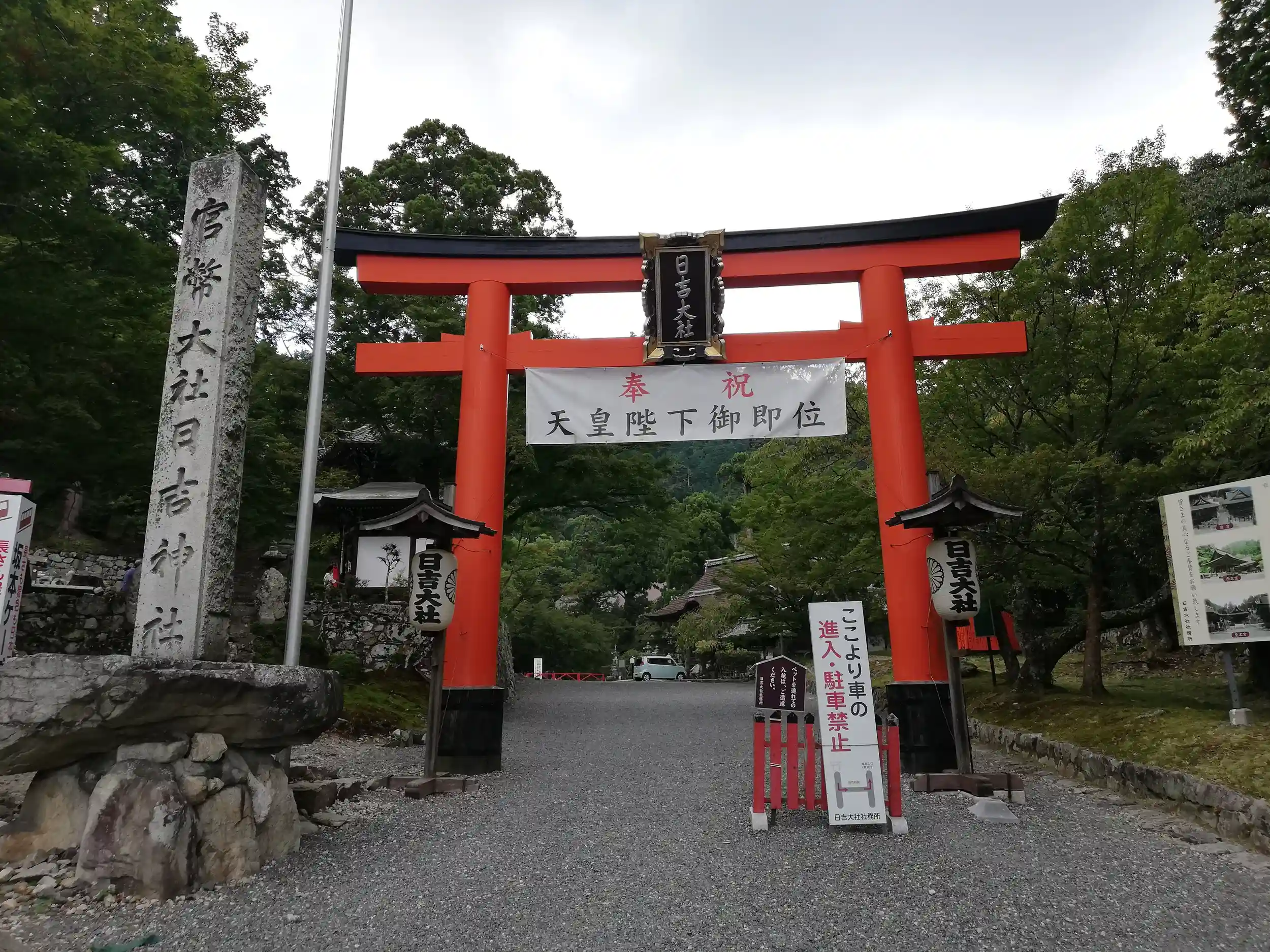 便利な説明書き。日吉大社の歴史を学びます。