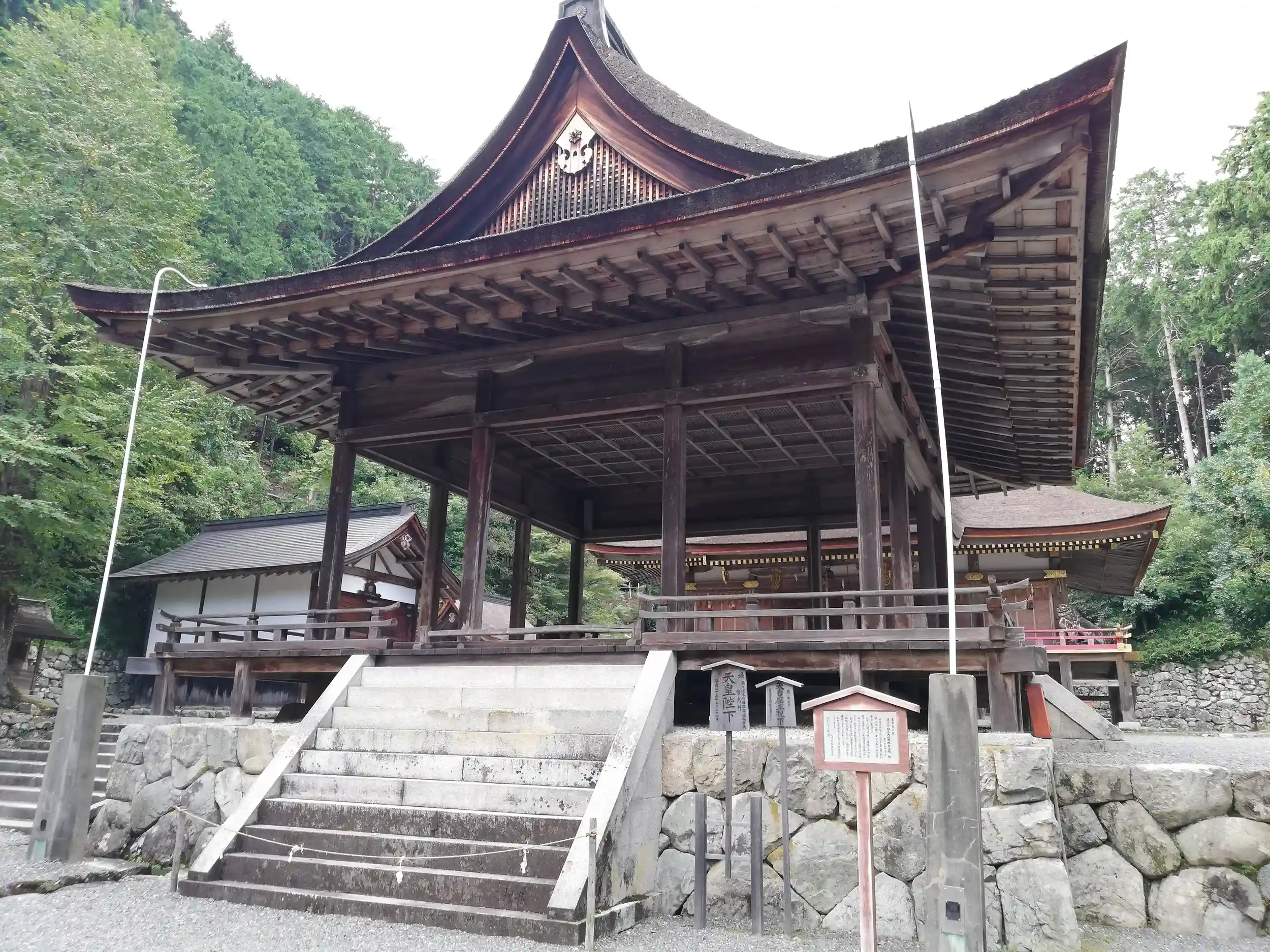 境内は2つの本宮と5つの摂社からなりますが、中でも西本宮・東本宮はともに国宝指定されています。本宮の本殿の造りは「日吉造」という独特の建築様式であり、観察しがいがありました。