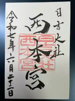 真ん中に西本宮と書かれ、右上に日吉大社の文字、真ん中に日吉大社西本宮の印が押されています。