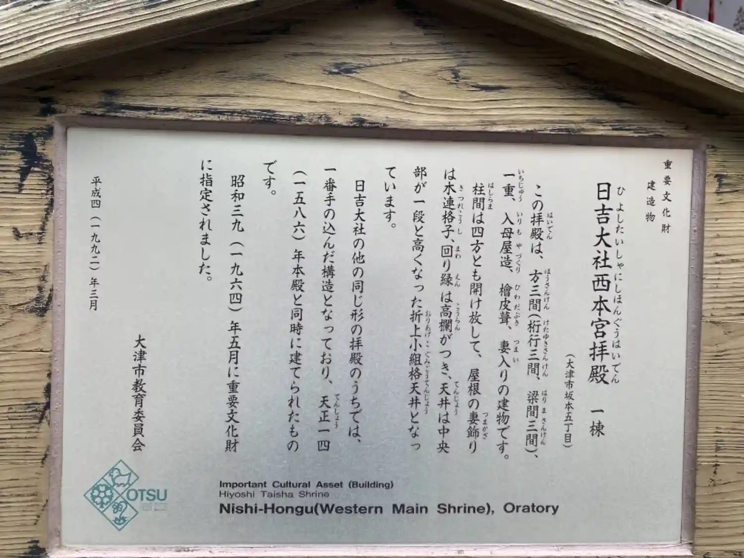 便利な説明書き。日吉大社の歴史を学びます。