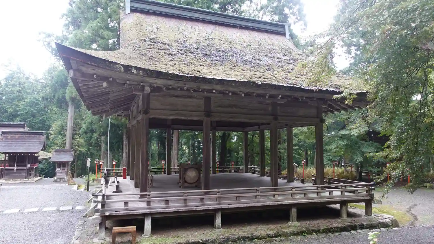 神門をくぐると、目の前に<拝殿>。方三間、一重、入母屋造、妻入、檜皮葺。国指定の重要文化財。