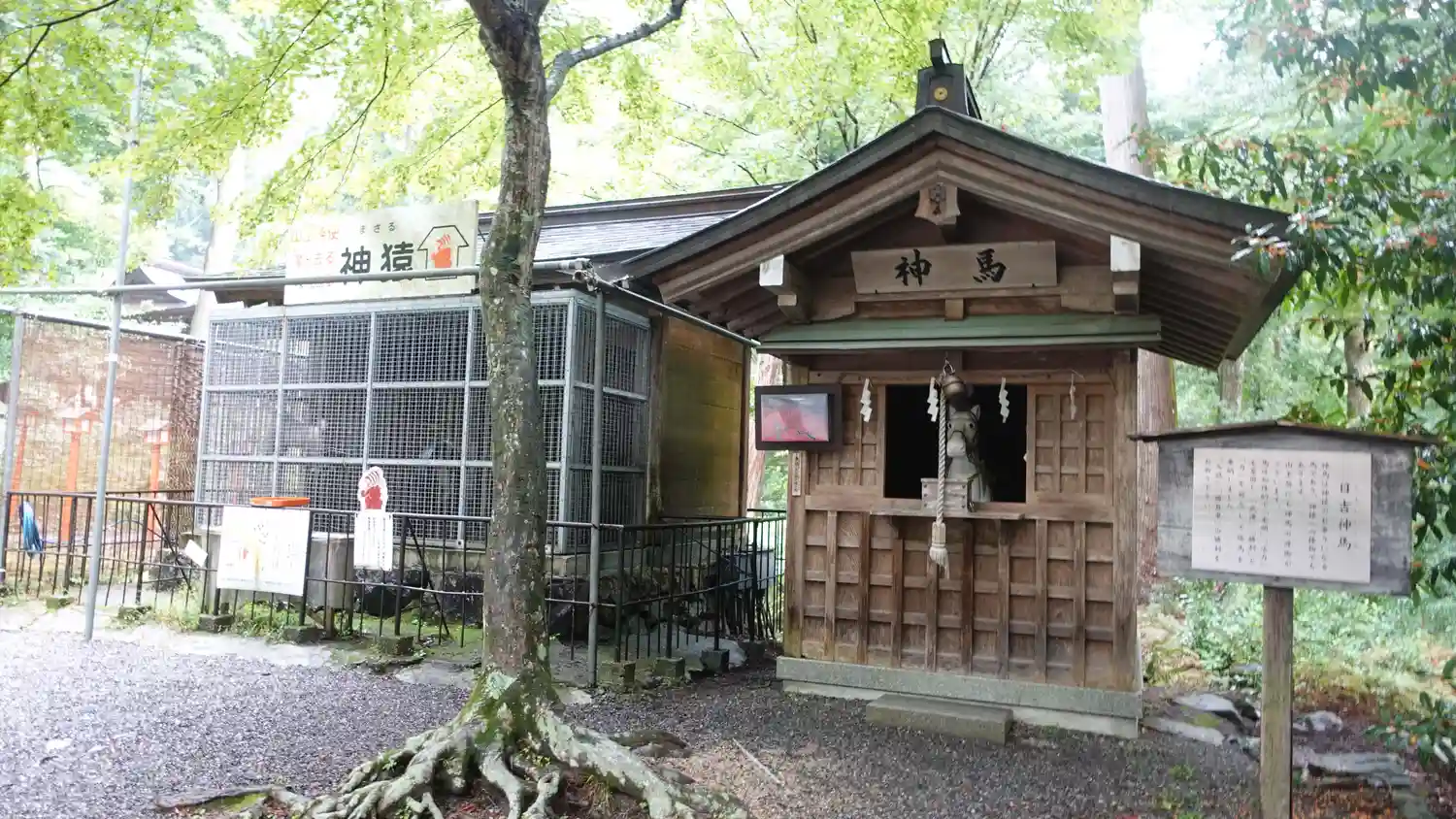 神馬舎の隣、こちらも有名、山王の神の使い<神猿>。神猿とかいて<まさる>と読む。檻の中には本物のおさるさんが2頭。
