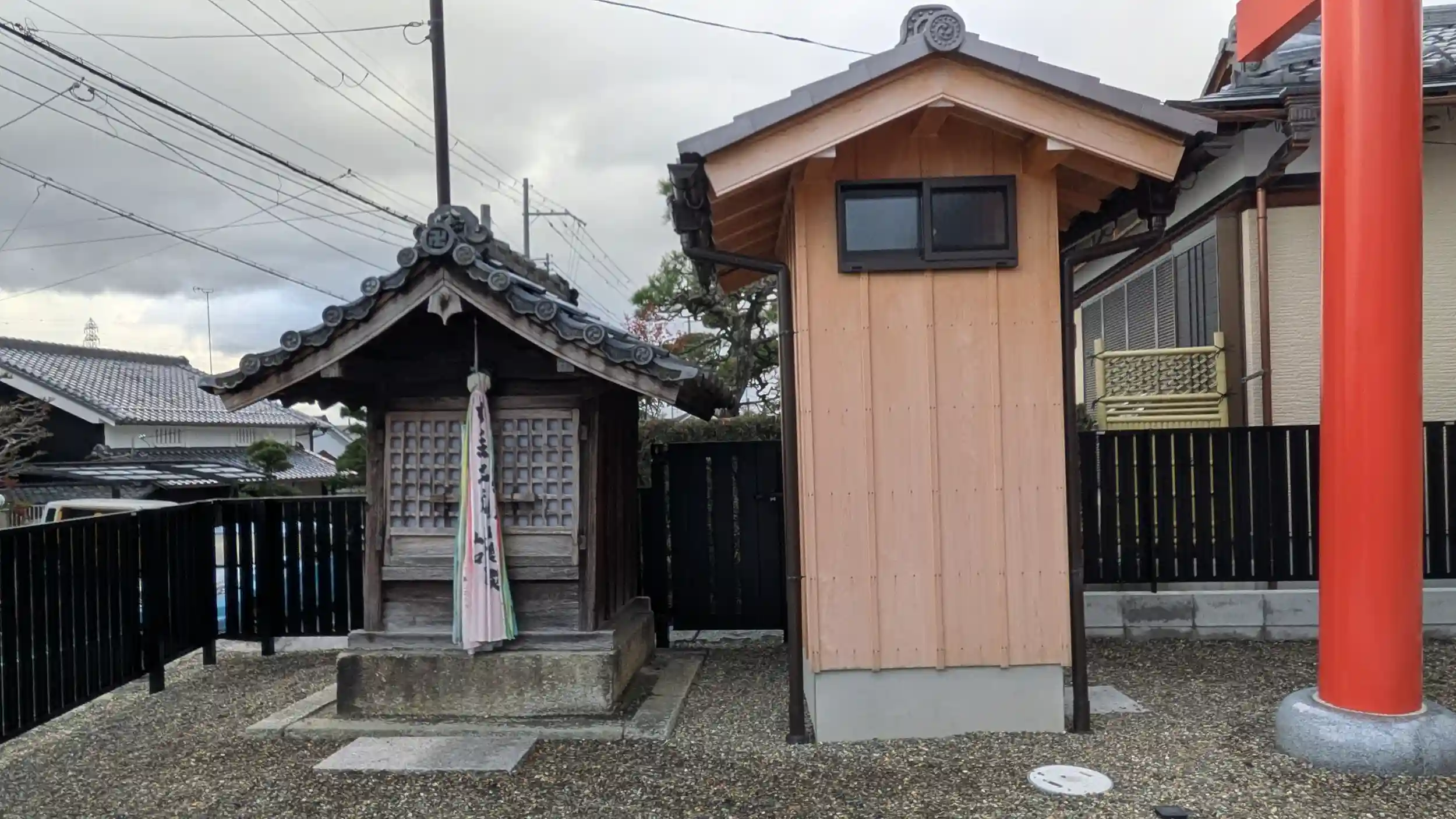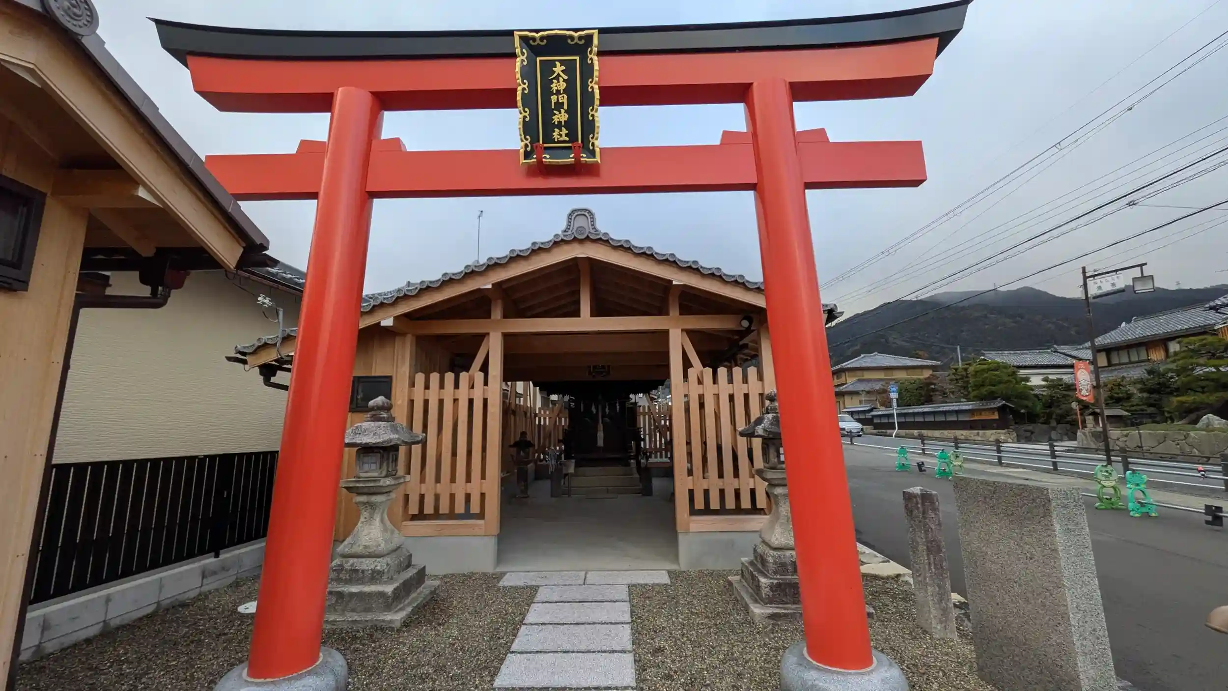 日吉大社一の鳥居のところにある大神門神社へ。鳥居や覆屋などは綺麗にされており路地挟んだ東側にも小祠三基が納められた覆屋がありました。由緒によると御祭神は山王三聖となっていましたが、ネットでは豊岩門戸命(とよいわとのみこと)と櫛岩門戸命(くしいわとのみこと)となっているものも見受けられます。どちらなのかはわかりませんがお詣りだけさせていただきました😅